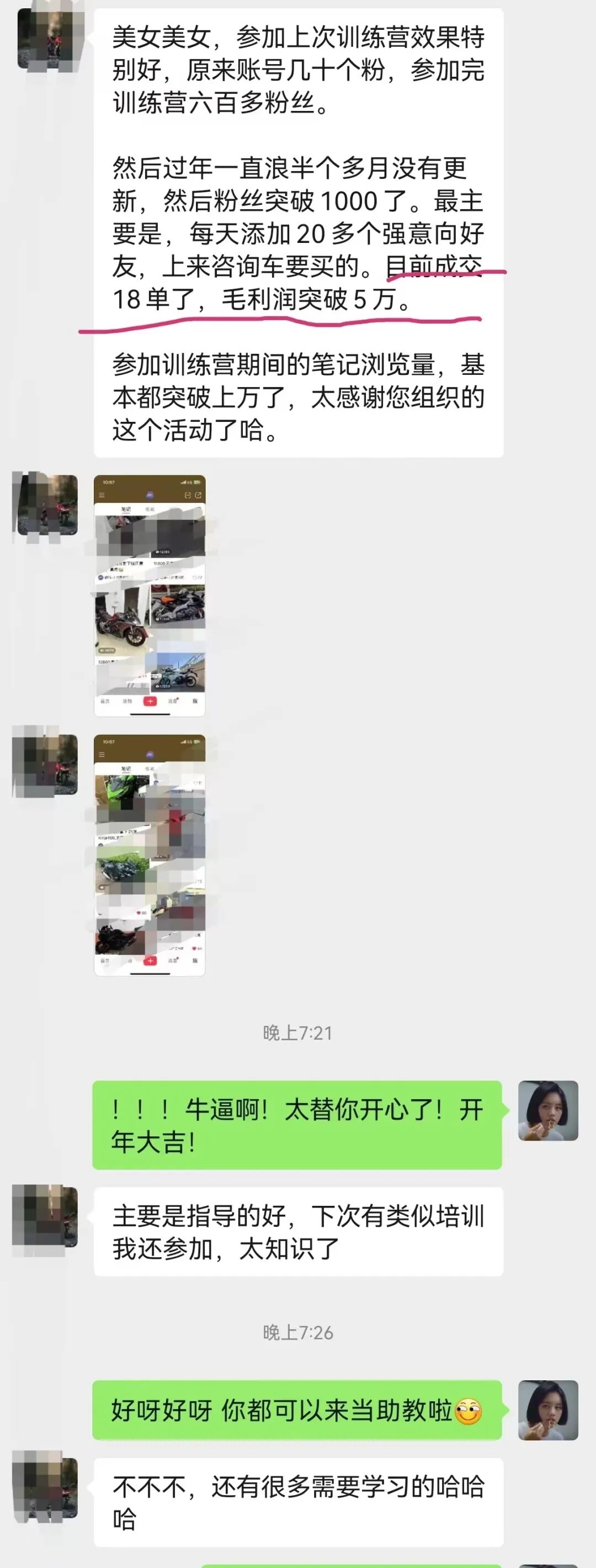 虽然过程比较短,但不少小伙伴掌握了做小红书的基本逻辑和方法,成果也是非常丰硕:有人接到了商单、有人私域引流不断、有人看到了做副业的潜力……👇