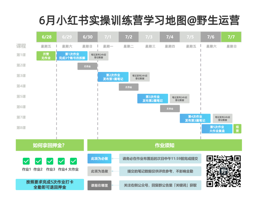 好,进入主题,第17期野生运营“9天小红书实操”押金制训练营开始报名(6月28日~7月7日),话不多说,先来占座,也可以看看以下的活动详细介绍哦!