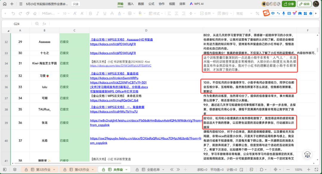 5月底刚刚结束了第16期野生运营“9天小红书实操”押金制训练营。这次做了课后的用户反馈收集,我计算了一下,好评率98.7%,大家的反馈:1、这个小红书训练营堪比市面上3000元的 2、训练营扣1分,因为我自己的问题,内容太多太好,我还没有吸收好 3、群里的氛围太好了,群友们互相帮助,给我很多思路上的启发 …… 太多了,看图吧