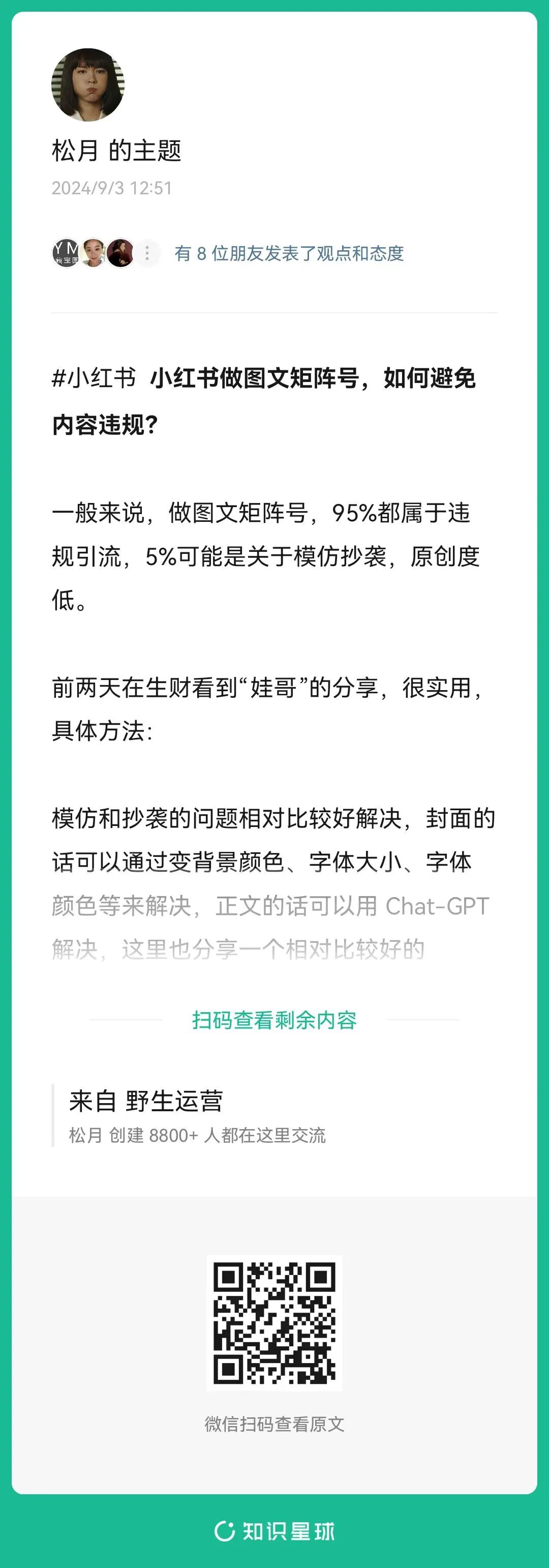 5、松月:小红书做图文矩阵号,如何避免内容违规(扫码查看全文)