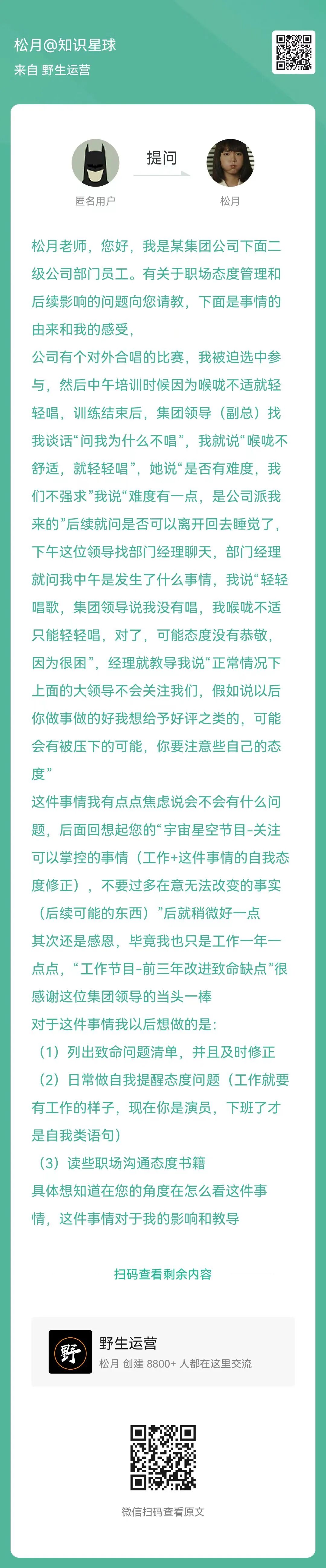 2、提问:有关于职场态度管理和后续影响的问题想请教?(扫码查看全文)