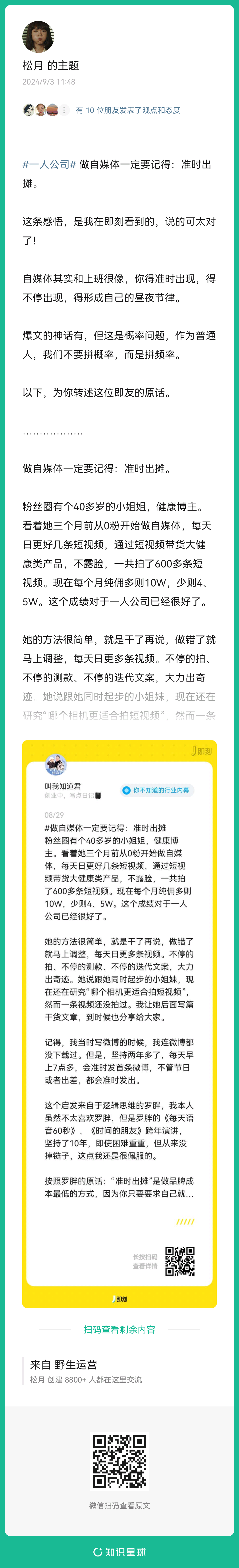 4、松月:做自媒体一定要记得:准时出摊(扫码查看全文)