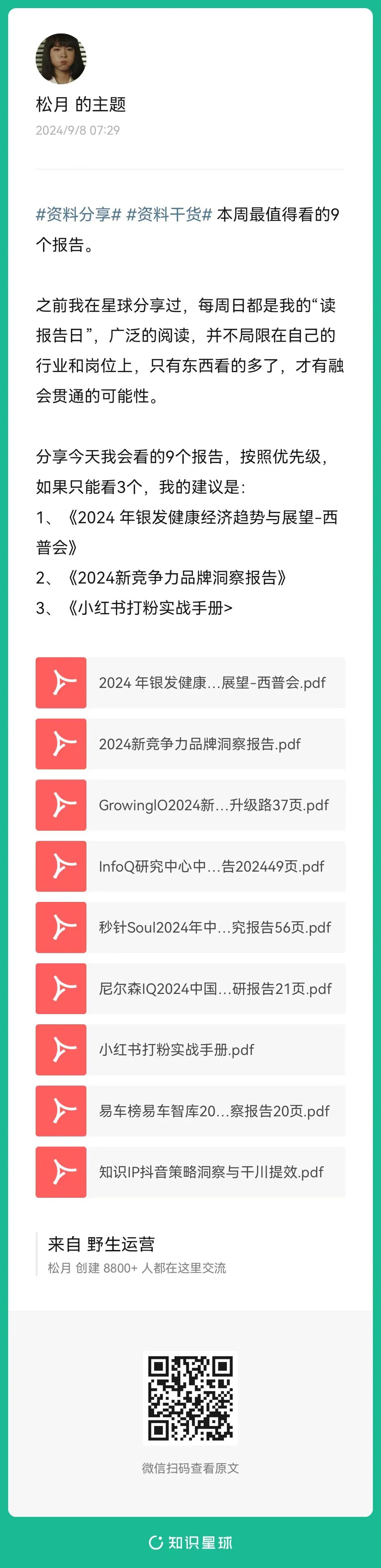 野生运营知识星球,每周会产生大量精华内容,每周一为你整理《野生运营:一周星球内参》,让你不错过任何一条有价值的信息。话不多说,这就开始!