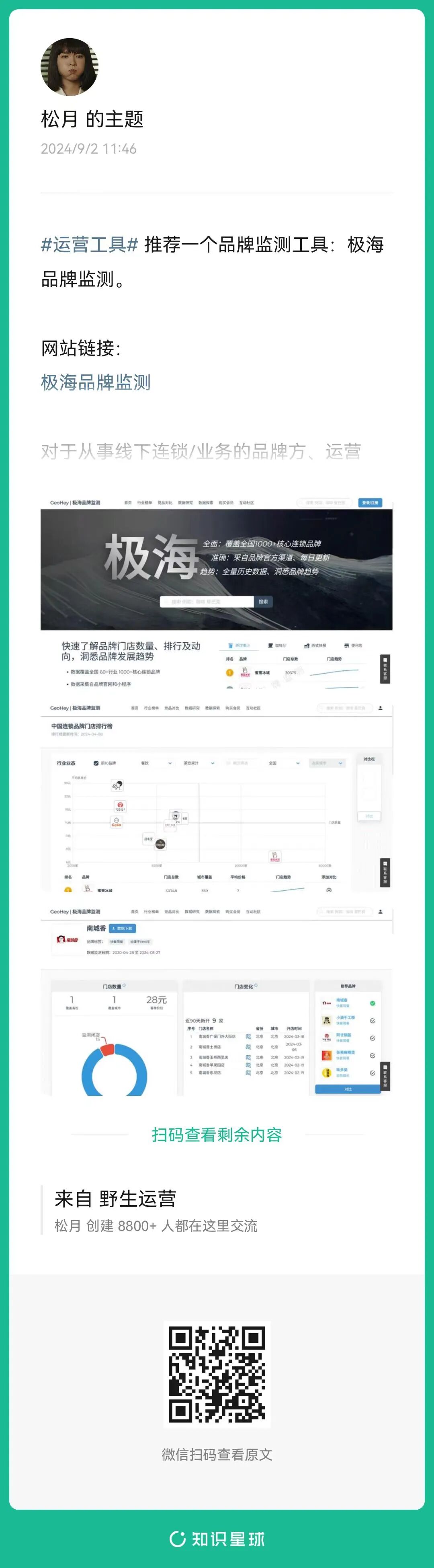 2、松月:推荐一个品牌监测工具:极海品牌监测(扫码查看全文)