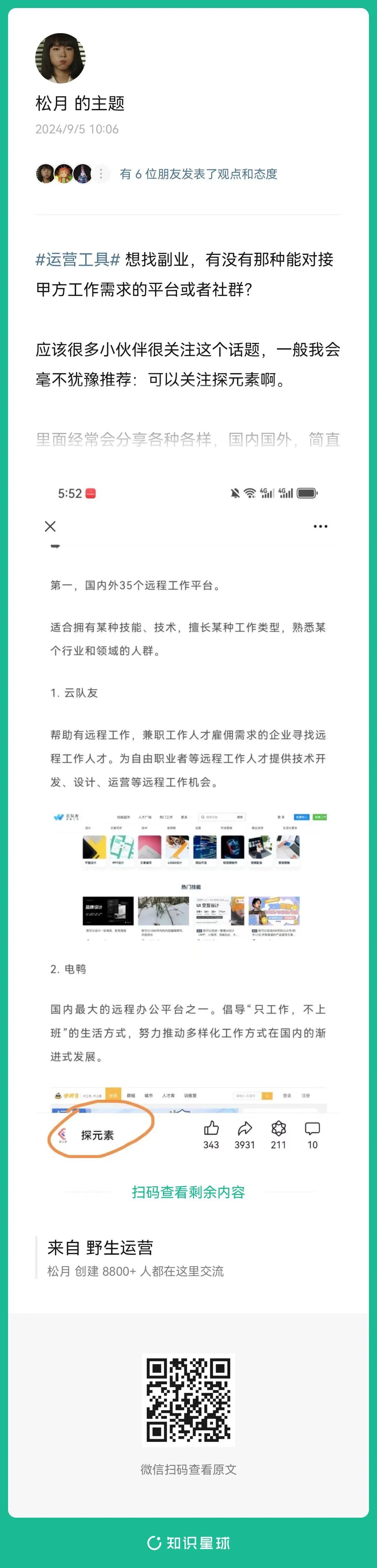 12、松月:想找副业,有没有那种能对接甲方工作需求的平台或者社群(扫码查看全文)
