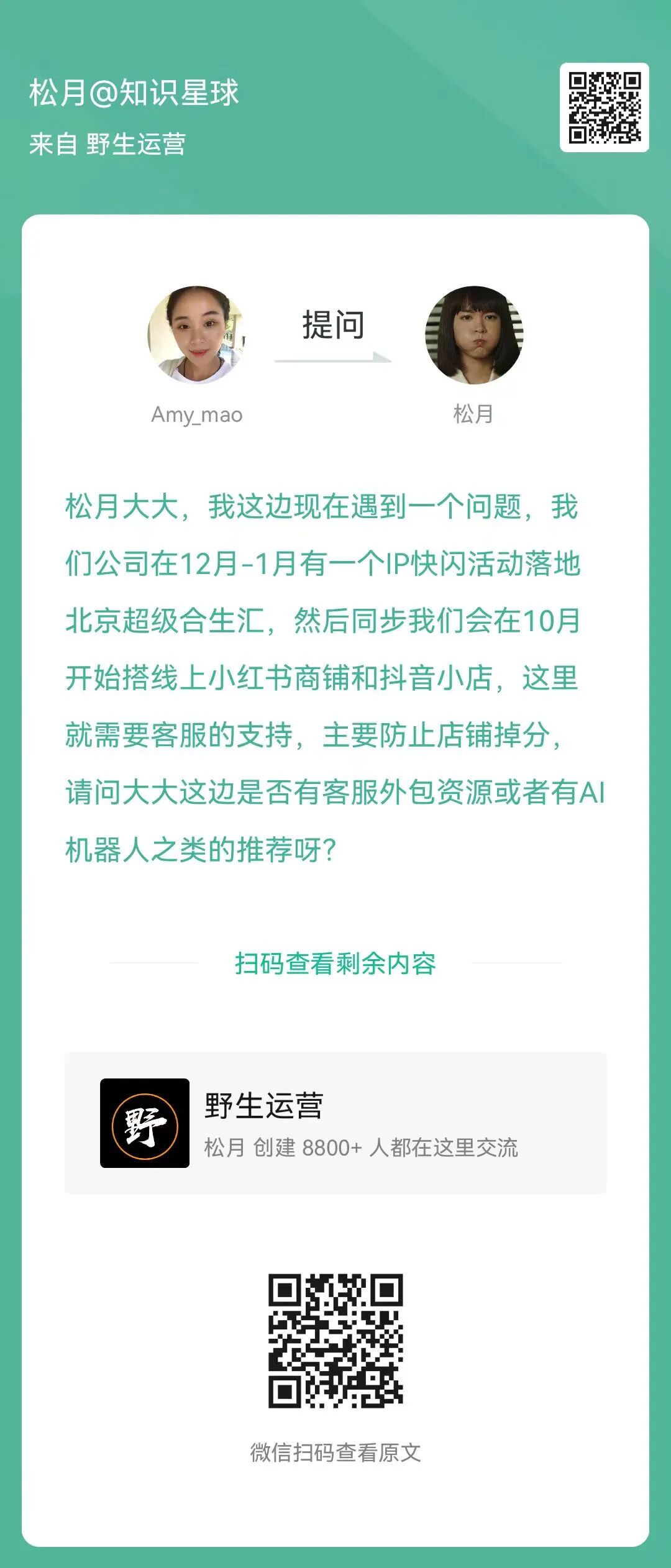 3、提问:这边是否有小红书客服外包资源或者有AI机器人之类的推荐呀?(扫码查看全文)