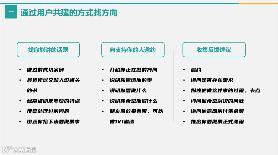 接下来给大家一个具体的方法,通过用户共建的方式找到课程的主题方向。