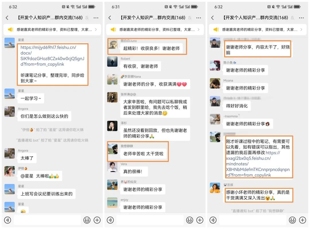 这次分享,足足持续了1小时45分钟,不少概念和实操让我打开了新思路,快闪分享群的学习氛围也拉满,很多小伙伴在当场就输出了个人笔记。