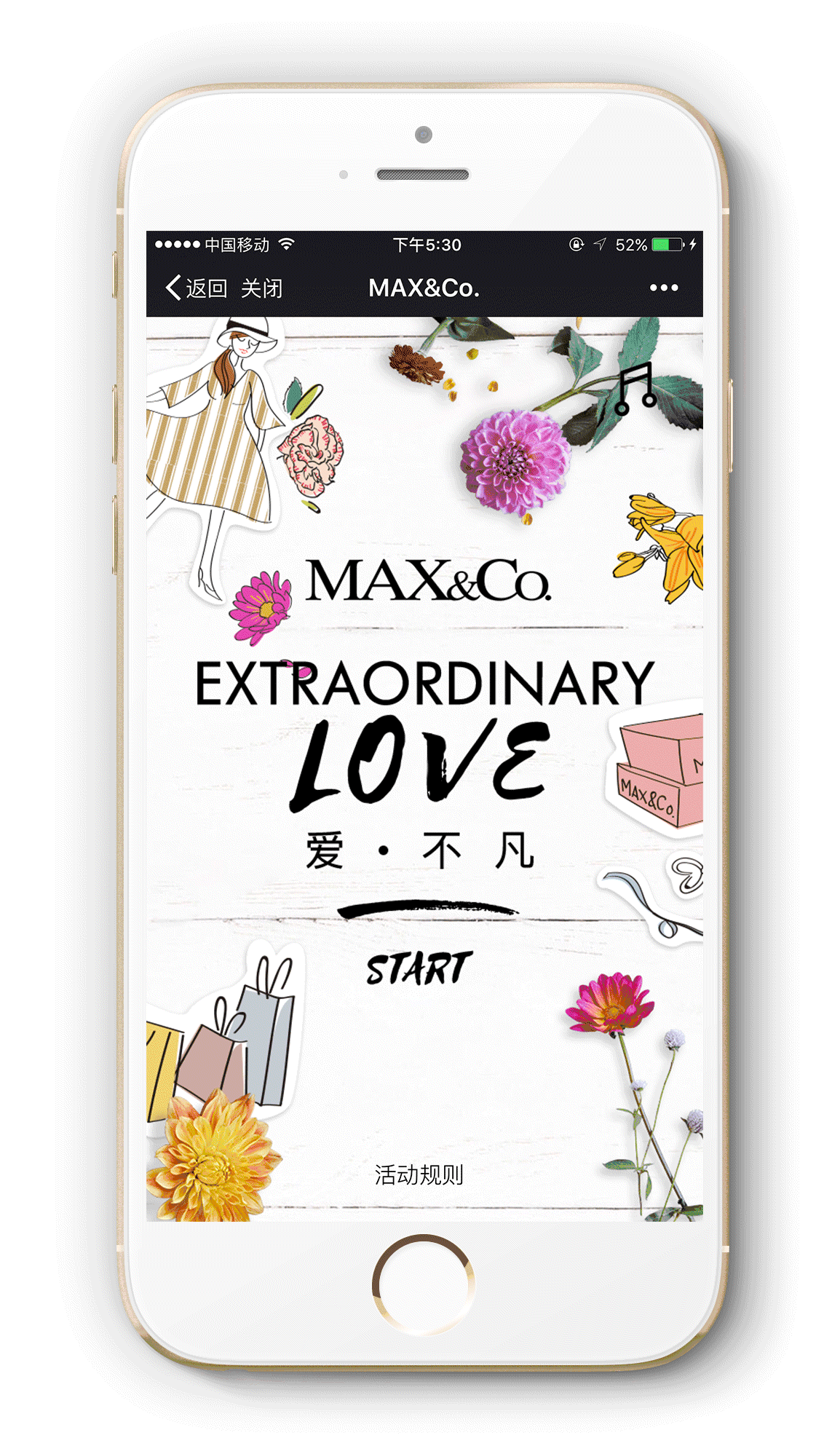 为了迎接520这一甜蜜时刻,ACTIVATION NODEPLUS为MAX&Co.粉丝贴心推出了专属H5小游戏,点点手指发送定制表情包,来个隔空花式表白。