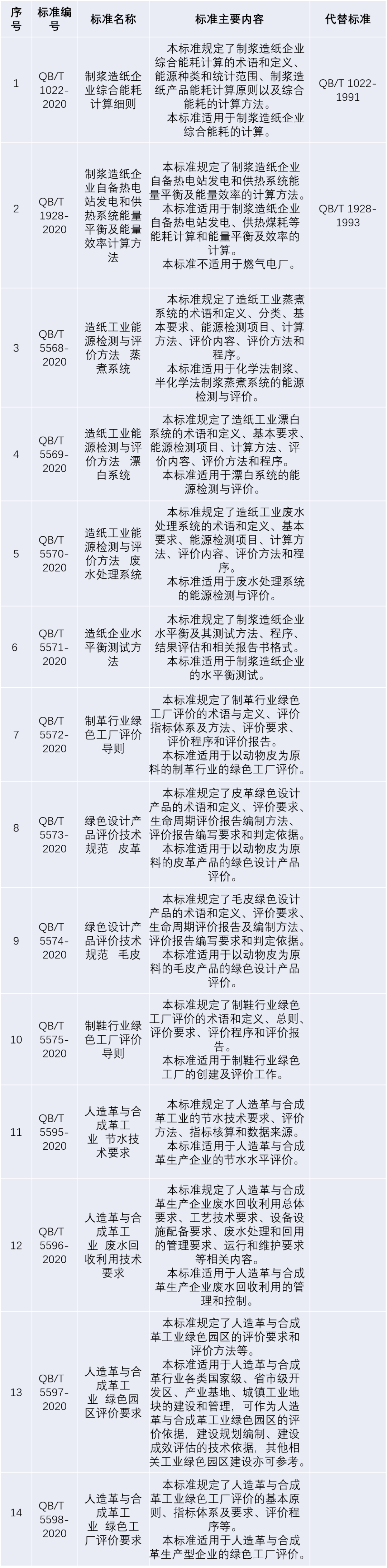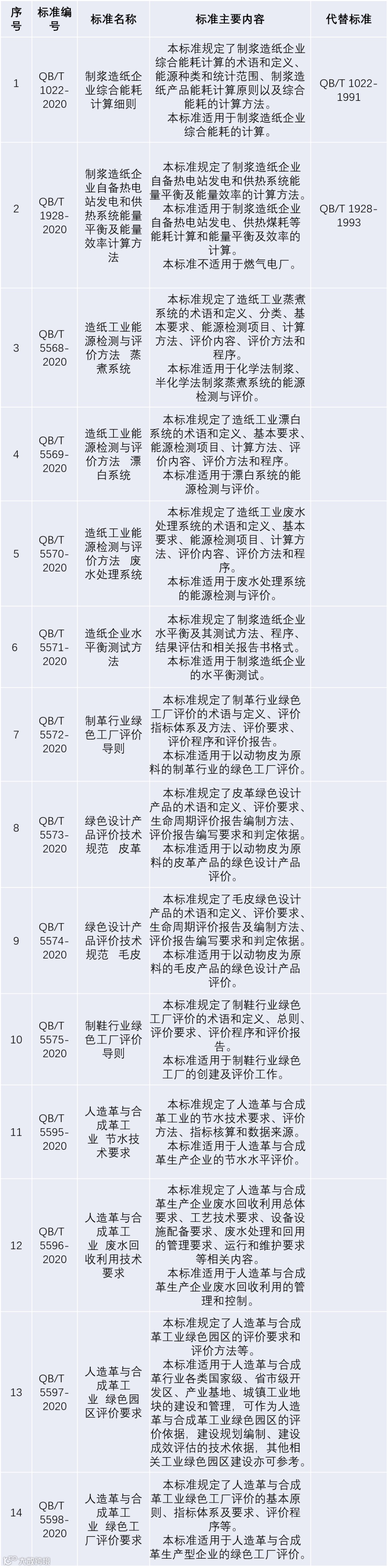 10月27日,工业和信息化部对200项行业标准及78项行业标准样品报批进行公示,涉及《制浆造纸企业综合能耗计算细则》等14项轻工行业标准。在标准批准发布之前,公开征求社会各界意见,截止日期为2020年11月26日。