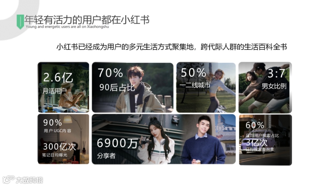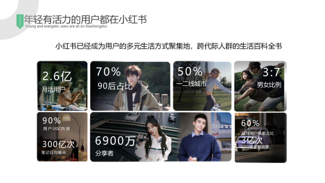 小红书是一个年轻、有活力的社区,汇聚了2.6亿的月活用户。其中,50%的用户来自一二线城市,男女比例大约为3:7。这个平台上90%的内容都是由用户自己生成的,3亿次的日均搜索查询量。这些数据充分说明流量相对来说就比较精准,因为有搜索就对应的是关键词植入,有对应的关键词植入就有SEO,所以它的流量是特别精准。