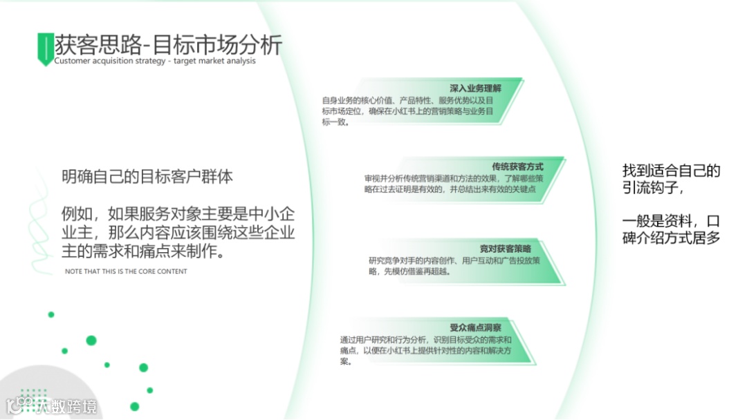 最后,找到适合自己的引流钩子。这些钩子通常是一些有价值的资料或者口碑介绍。