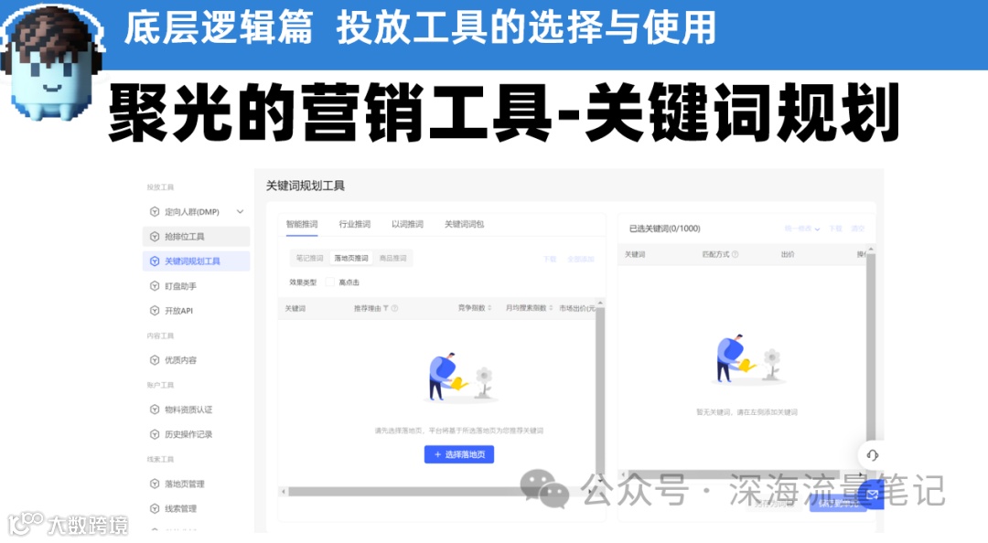 正常的线索投放或者是其他的营销投放的话,这个是你不管是你做自然流还是做投放,关键词是你在整个做内容板块逃不开也避不开的一个。很核心的东西。