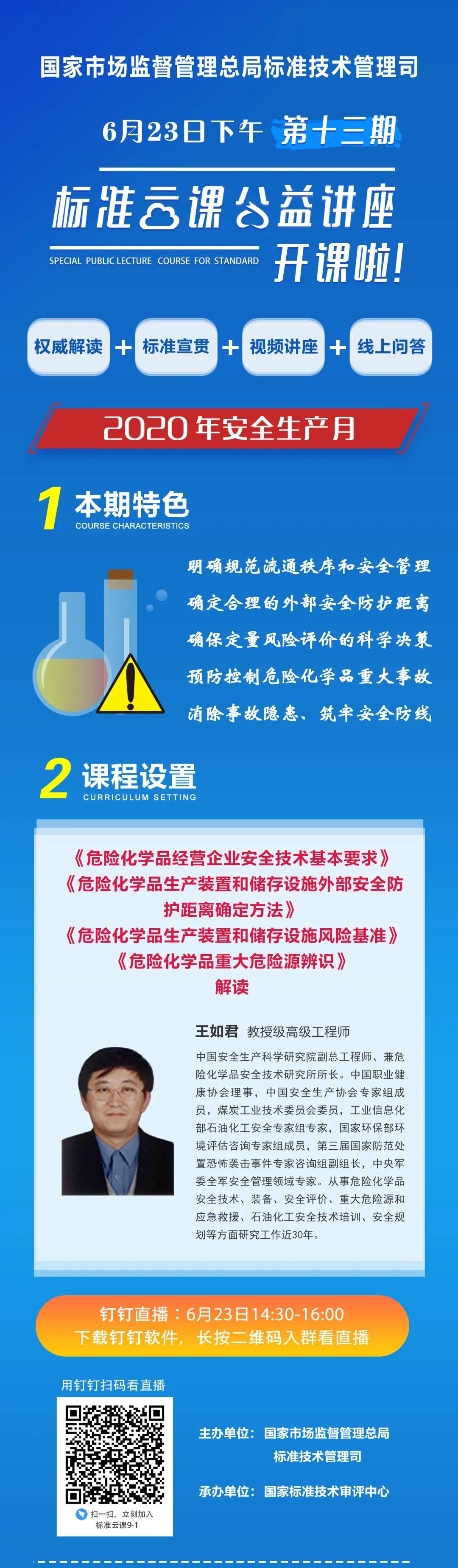 为发挥标准化作用,助力新冠疫情防控和企业复工复产,国家标准化管理委员会组织开展“标准云课”公益讲座活动,本次活动由市场监管总局标准技术管理司主办,国家标准技术审评中心承办。为做好相关工作,现就有关内容和要求通知如下: