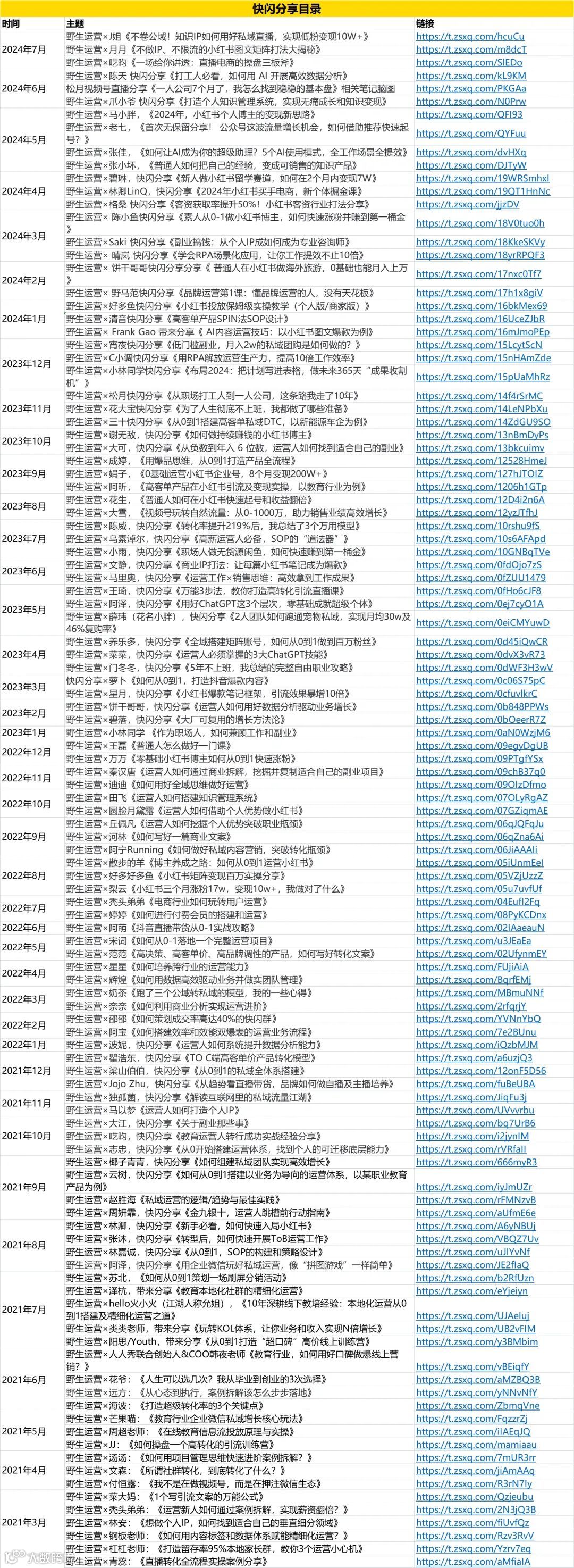 综合最近野生运营快闪分享的好评和受欢迎程度,为你精选 10 场快闪分享,今天是周末,不妨看看文章,如果没有参与当场分享,强烈建议去听直播回放,会更有现场体感。