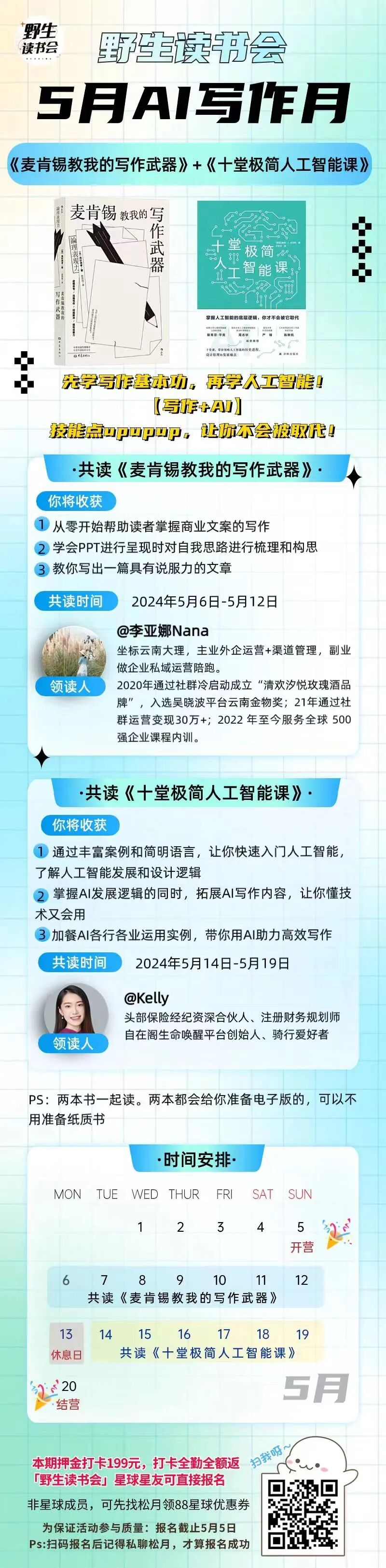 加入后添加松月微信,邀请你进入读书会长期群,并发你「野生读书会」过往 80+ 本书的“领读笔记+同款电子书”: