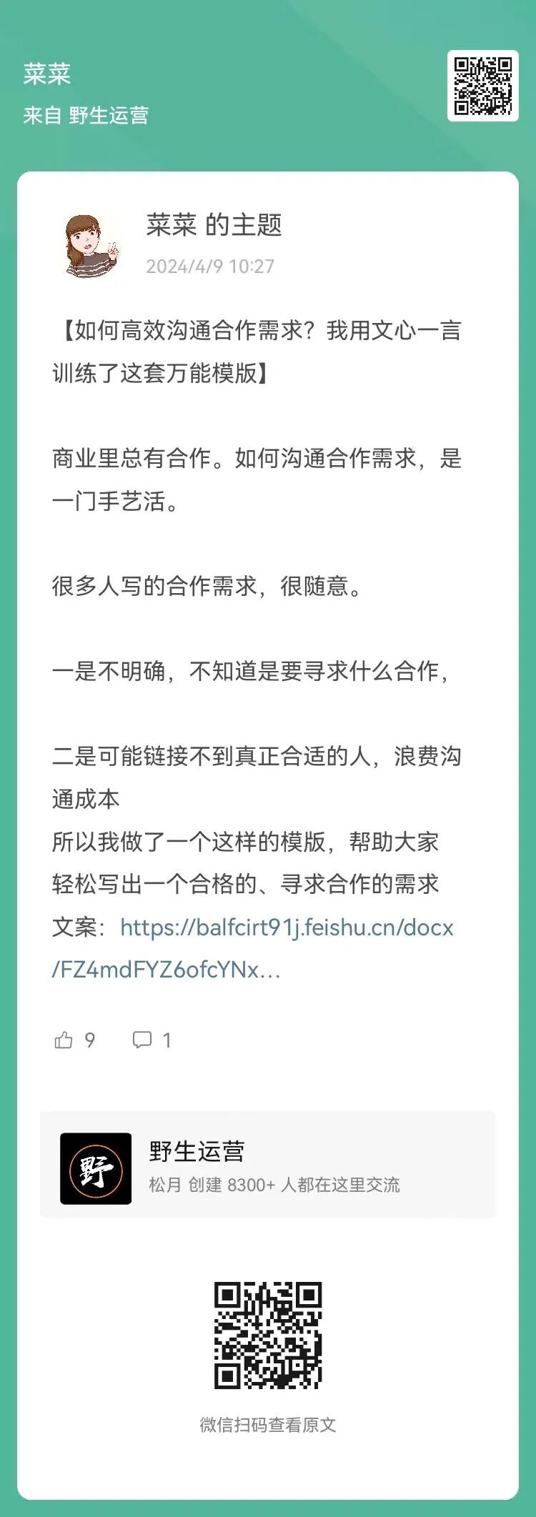5、菜菜:如何高效沟通合作需求?我用文心一言训练了这套万能模版(扫码查看全文)