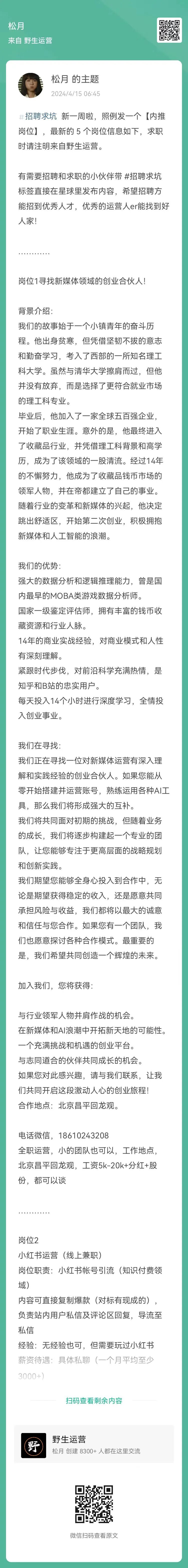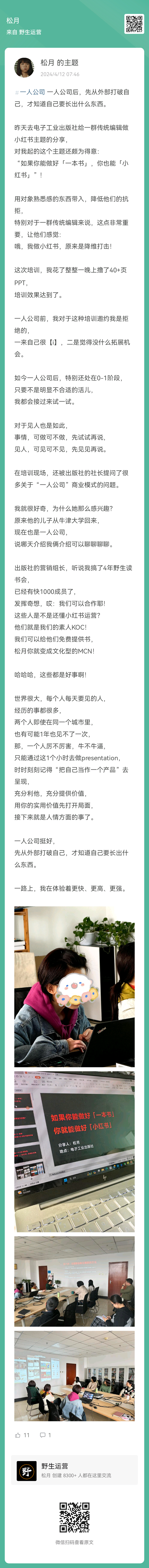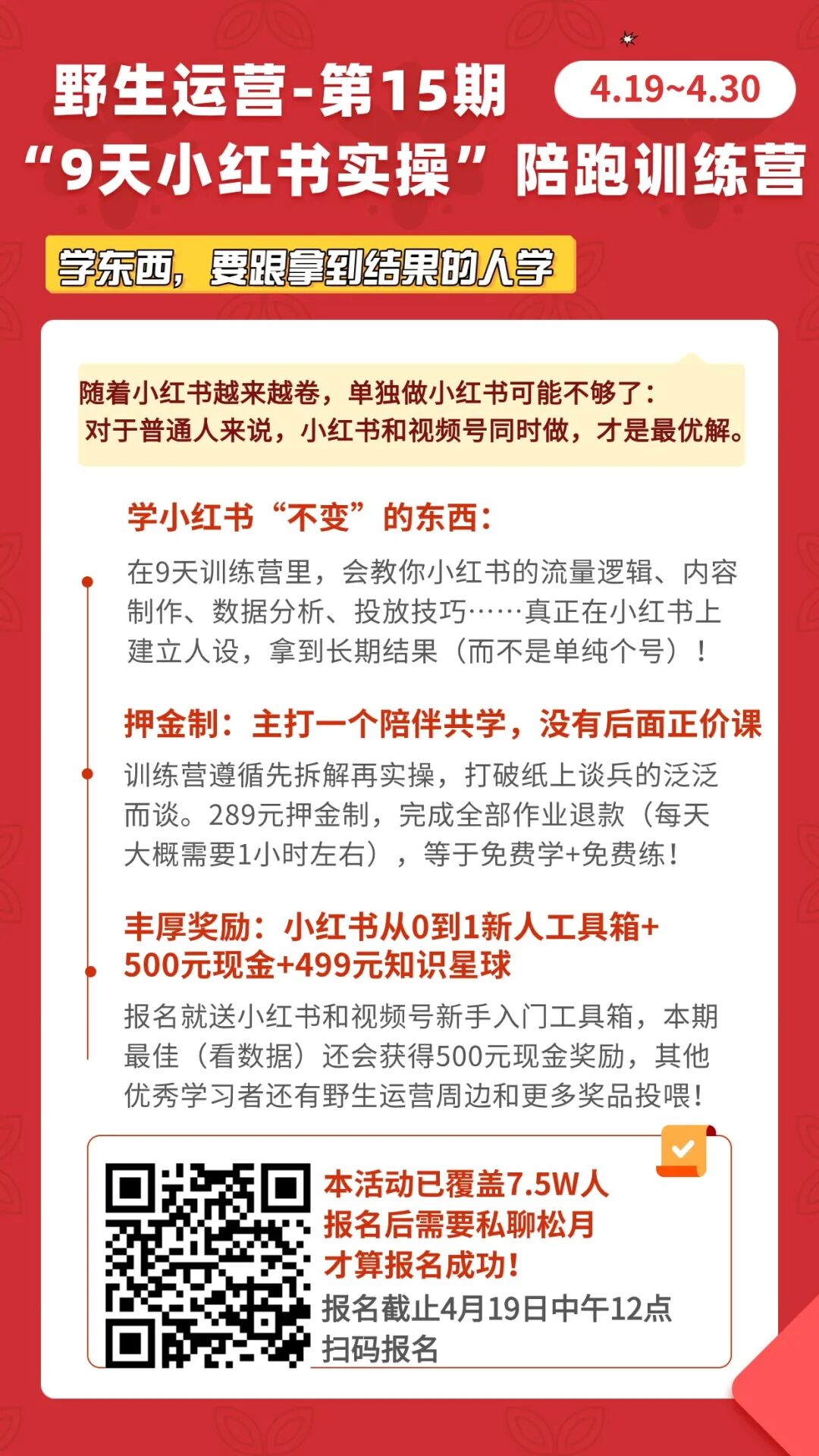 20、松月:4月13日晚8点,野生运营×碧琳,快闪分享《新人做小红书留学赛道,如何在2个月内变现7W》(扫码查看全文)