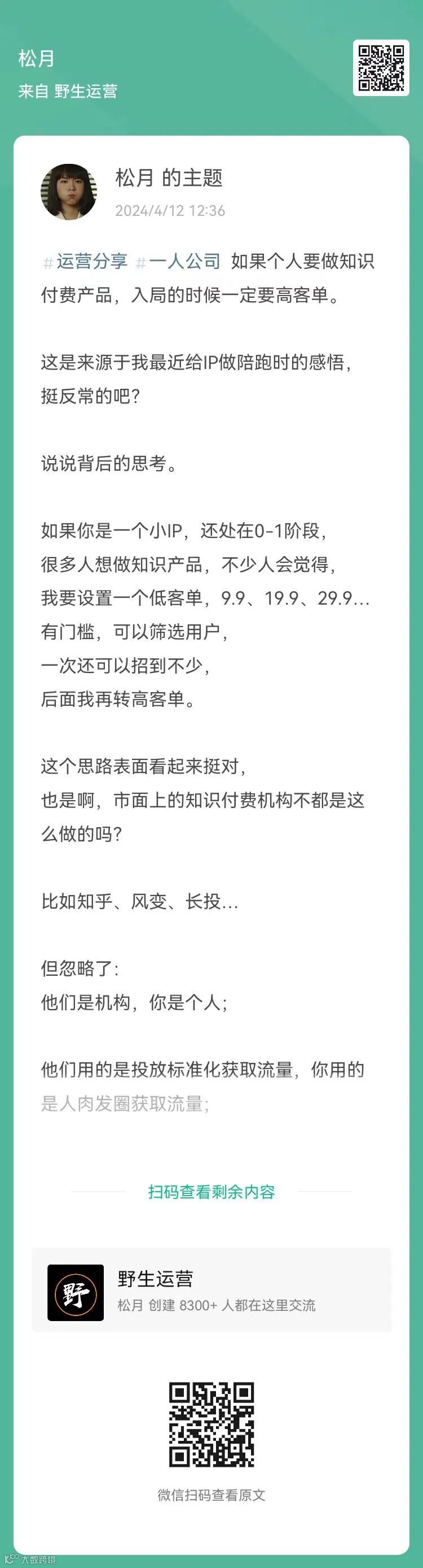 15、松月:如果个人要做知识付费产品,入局的时候一定要高客单(扫码查看全文)