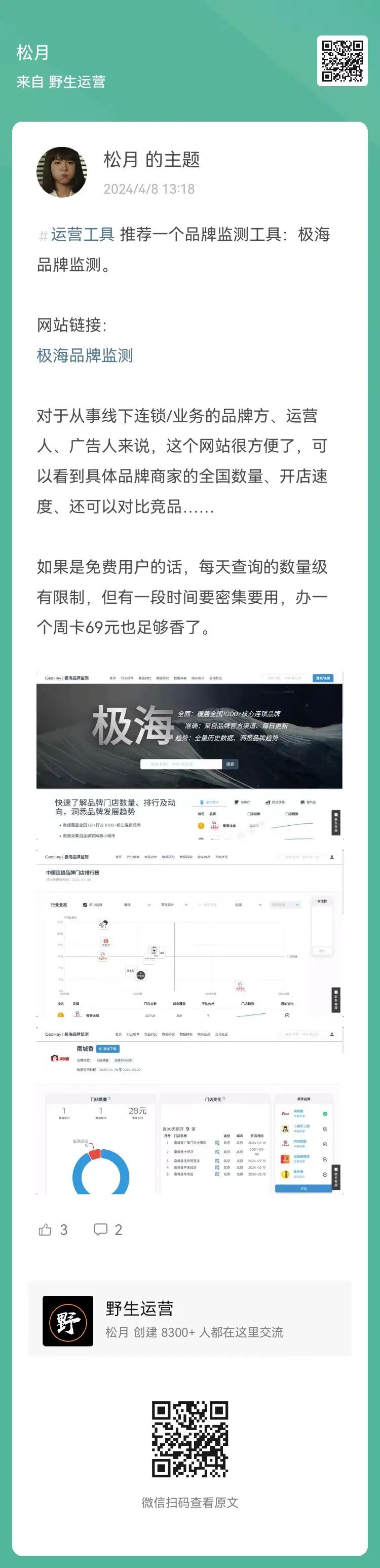 2、松月:推荐一个品牌监测工具:极海品牌监测(扫码查看全文)