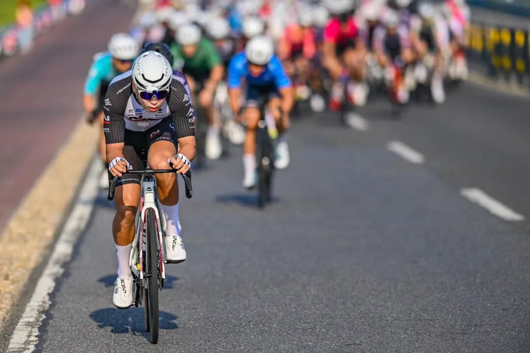 比赛当天,气温逐渐攀升,高温给选手们带来了不小的挑战。美利达 - 诺飞客车队的选手们从一开始就展现出了强大的团队协作能力,他们紧密配合,在主集团中不断寻找突破机会。车队的每一位选手都如同训练有素的战士,在赛场上默契配合,协同作战。他们巧妙地利用团队的战术,相互掩护,始终保持着高速前进的节奏。在关键的冲刺阶段,车队的张维毅如同一头凶猛的猎豹,瞬间爆发出惊人的速度,最终勇夺亚军。