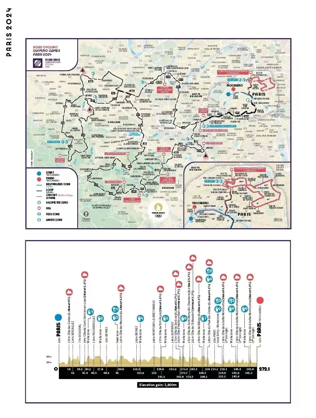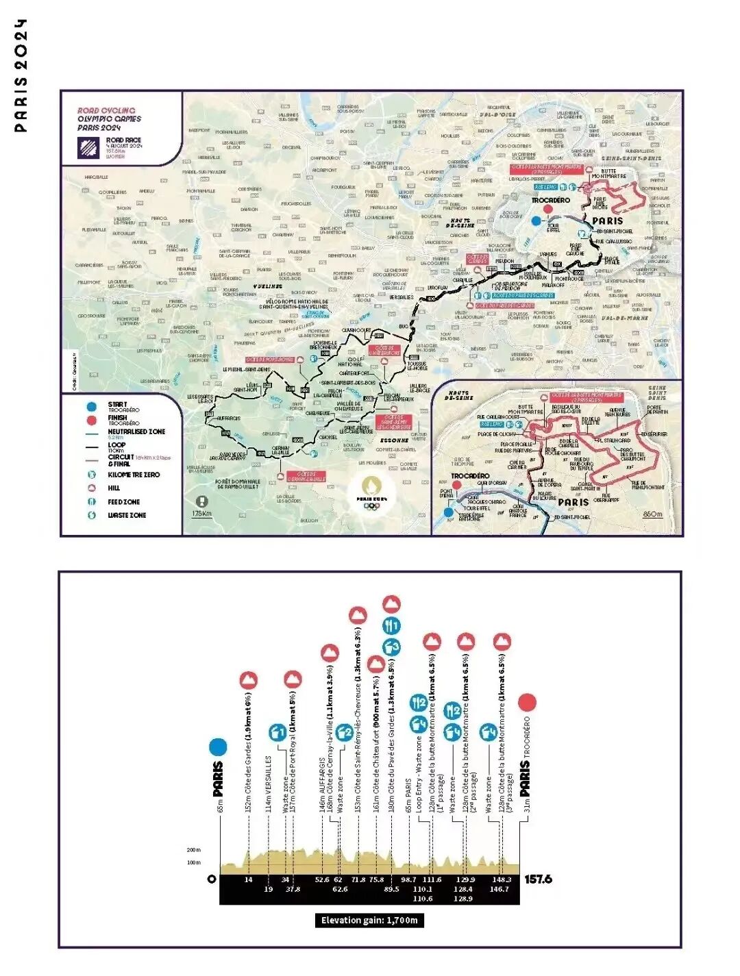 男子组赛程为272.1公里,从巴黎耶纳桥出发后向西南方向进行224.6公里的环线骑行,包含13段爬坡以及最后阶段的两圈蒙玛特山石头路绕圈,赛段总爬升2800米。女子组为157.6公里,女子组包含9段爬坡和最后阶段的两圈蒙玛特山石头路绕圈。最后返回耶纳桥。赛程整体呈现了巴黎周边众多的著名景点。