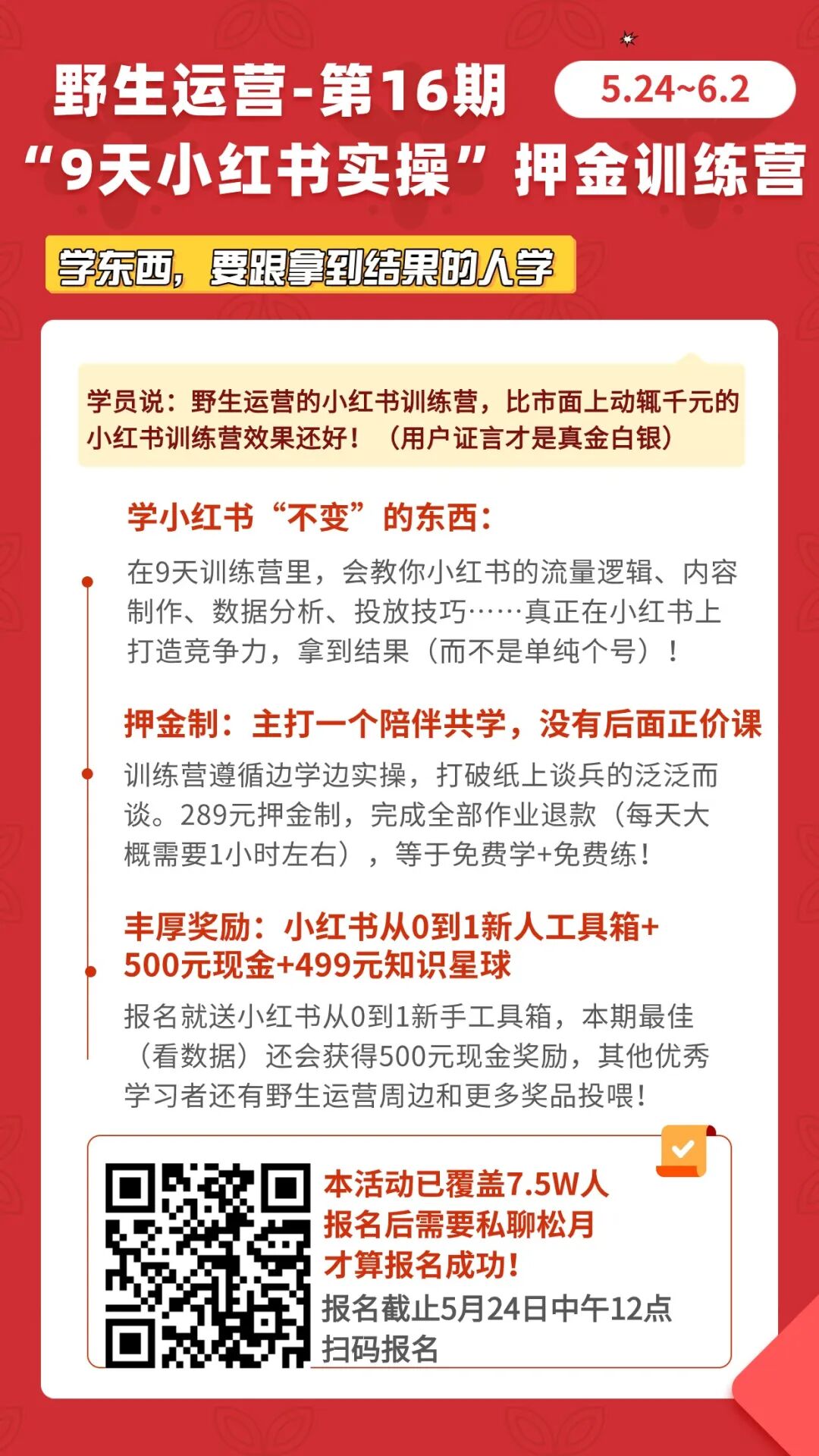好,进入主题,第16期野生运营“9天小红书实操”押金制训练营开始报名(5月24日~6月2日),话不多说,先来占座,也可以看看以下的活动详细介绍哦!