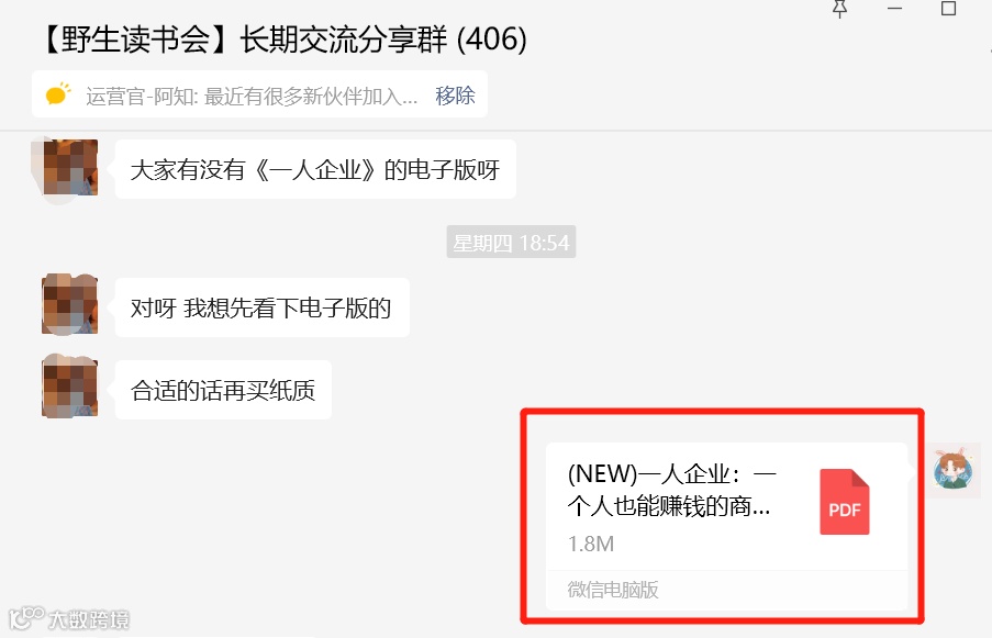 每周一晚,运营官阿知在会员群里会发新书分享,还同时奉上电子书: