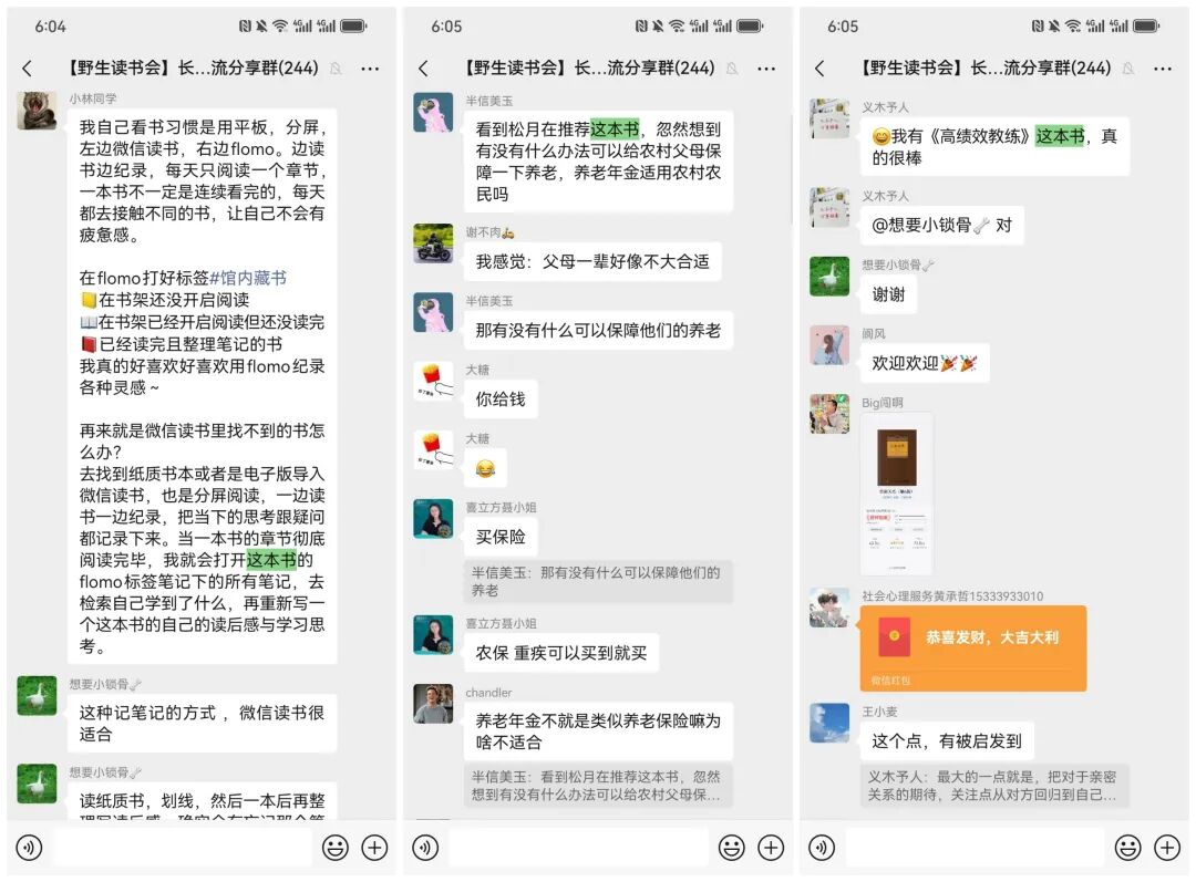 会员群的书友们的书籍分享、读书心得、读书方法交流更是千金难换:
