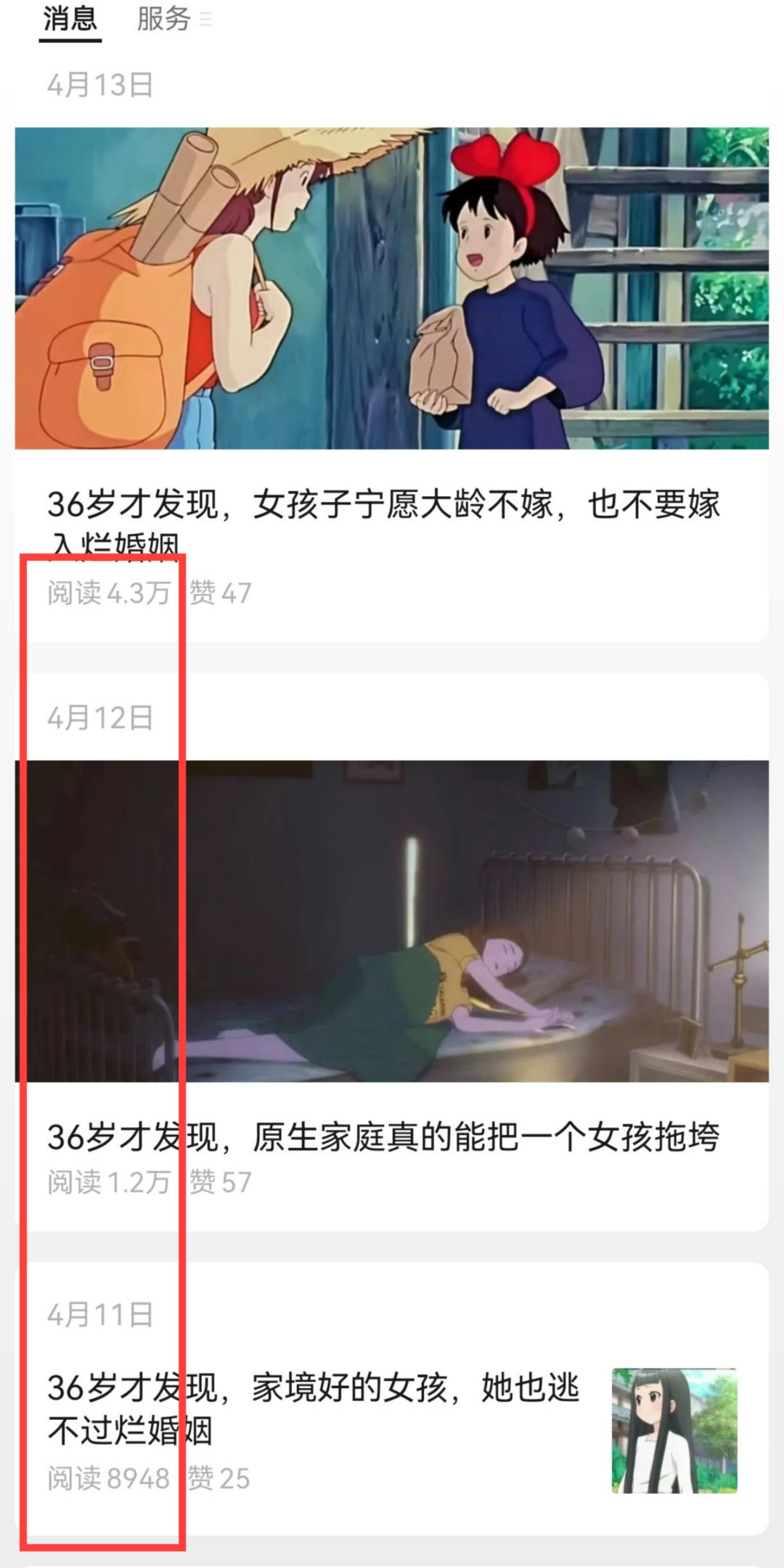 我最近看到大量这样的账号案例。比如,某个账号粉丝不多,平时阅读只有几百,但最近几篇数据很好,几万、甚至10W+……账号快速破圈,背后是微信官方在微调公众号文章的推荐算法,比如: