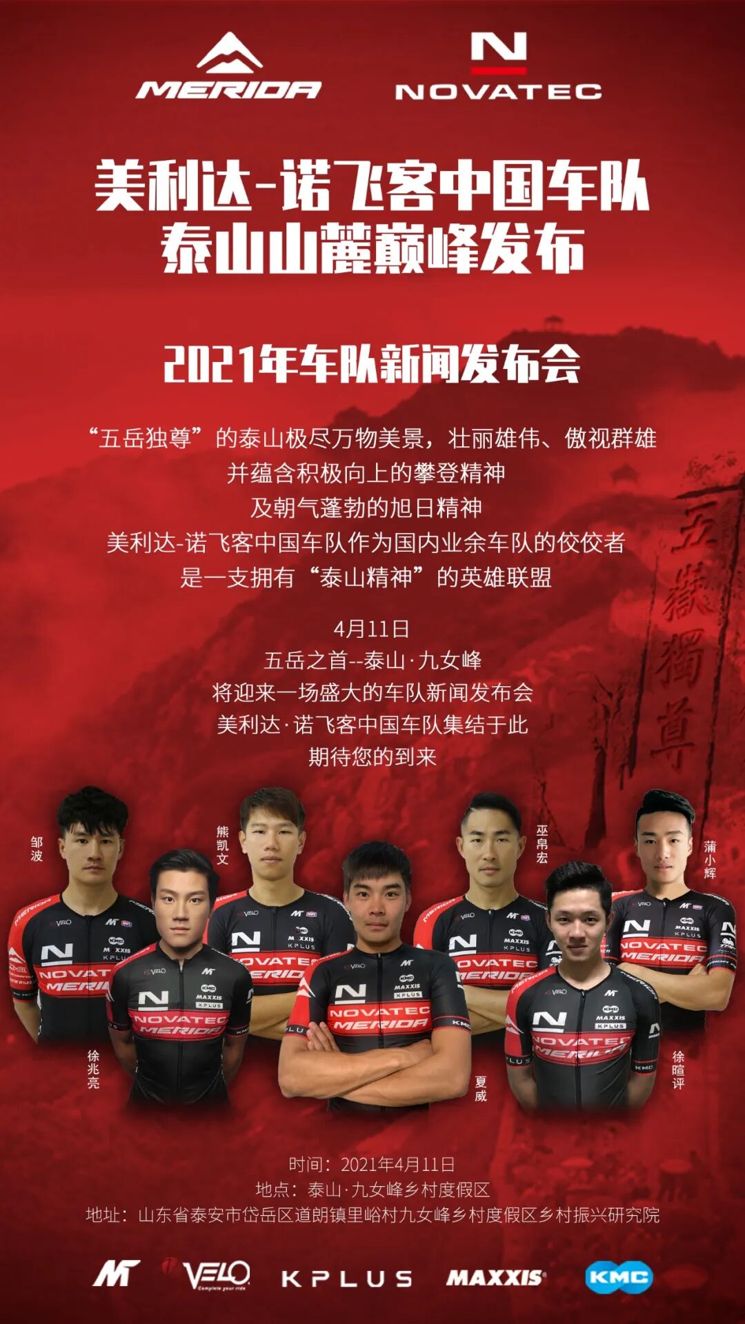 美利达-诺飞客中国车队2021赛季新闻发布会将于本周日在雄伟壮丽的“五岳独尊”泰山·九女峰举办。