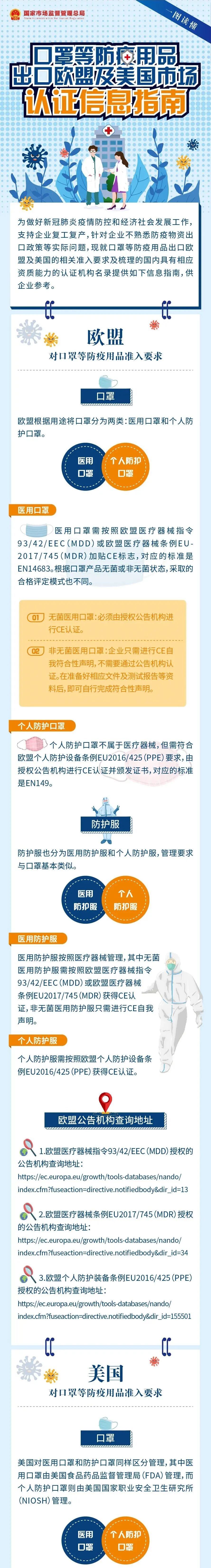 一图读懂 | 口罩等防疫用品出口欧盟及美国市场认证信息指南