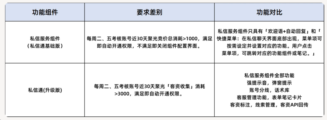 小红书官方的规则是:单月消耗1000元开启私信组件(快捷菜单,欢迎语自动回复),消耗大于3000元开启私信通(自动回复,客服轮值)(每周2,5审核) 下面用你能理解的话,我来具体解释一下: