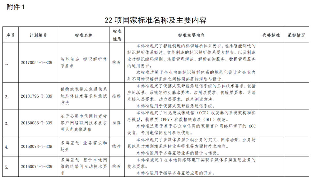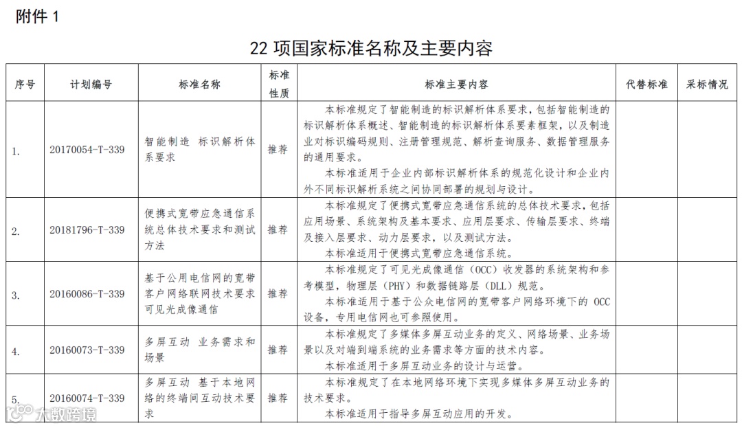 根据标准制修订计划,相关标准化技术组织已完成《智能制造 标识解析体系要求》等22项国家标准和《内容分发网络技术要求 汇聚节点》等60项行业标准的制修订工作,在批准发布之前,为进一步听取社会各界意见,现予以公示,截止日期2020年8月13日。