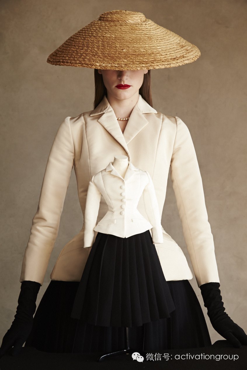 两年后的一九四七年二月十二日,如回响一般,迪奥先生正式推出其首场高级订制发布秀,以“新风貌”(New Look)颠覆了世界的时尚准则。今日的迪奥迷你剧院展览正是对一九四五年历史事件的回顾。同时,也是对高级订制工坊巧夺天工的技艺的一曲赞歌,巧手裁缝的才华在如此精巧细致,与原作毫厘不差的模型上得到充分的体现。