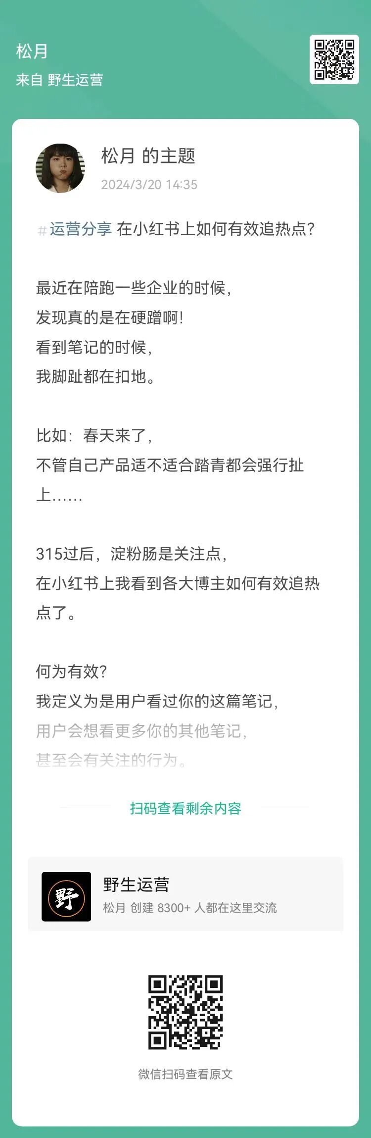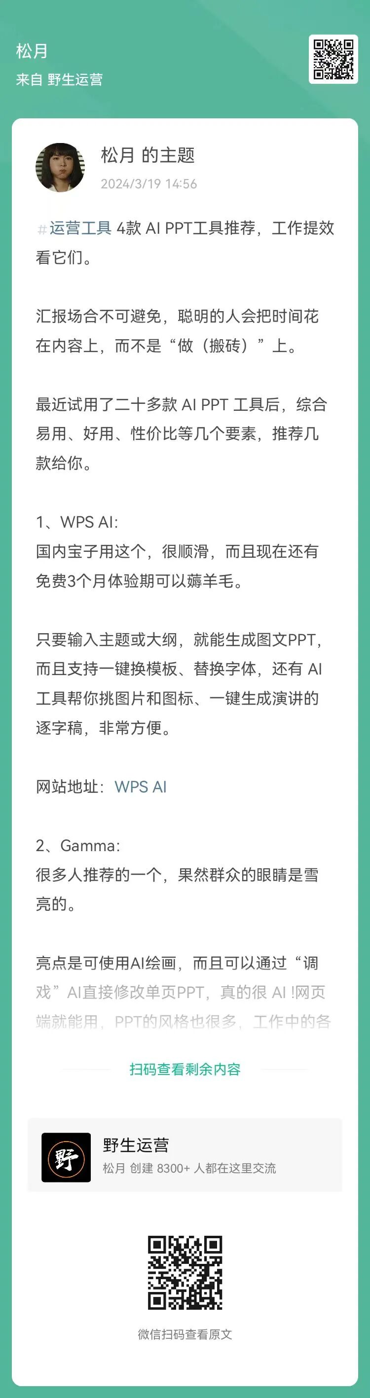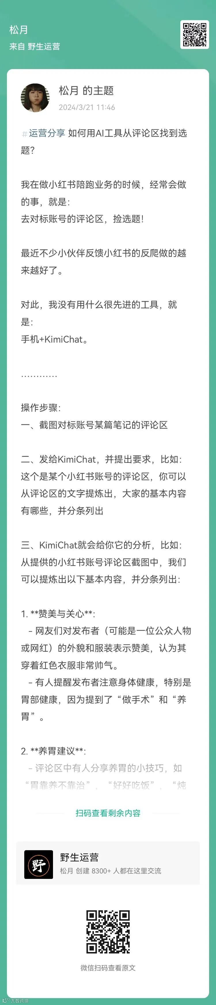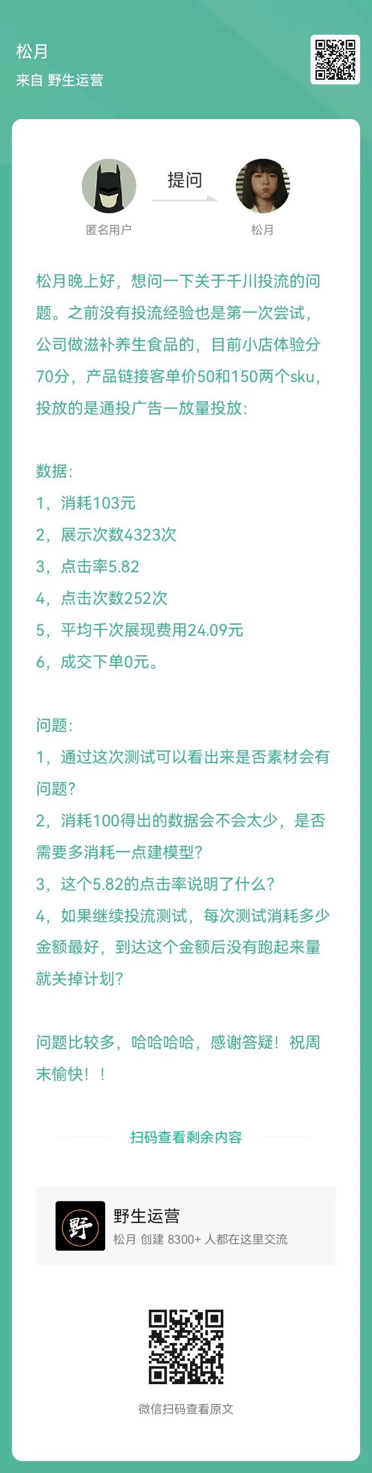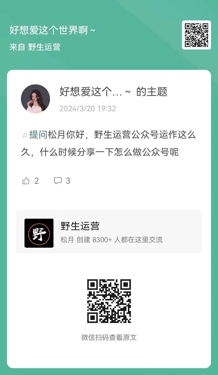 6、提问:野生运营公众号运作这么久,什么时候分享一下怎么做公众号呢?(扫码查看全文)