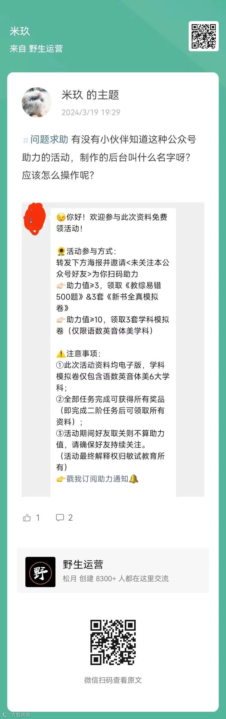 4、提问:有没有小伙伴知道这种公众号助力的活动,制作的后台叫什么名字呀?应该怎么操作呢?(扫码查看全文)