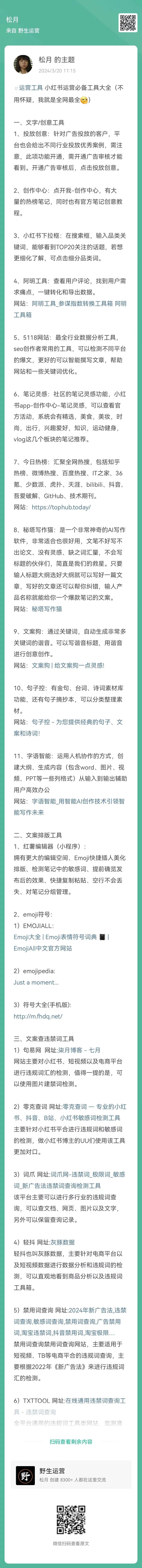 9、松月:小红书运营必备工具大全