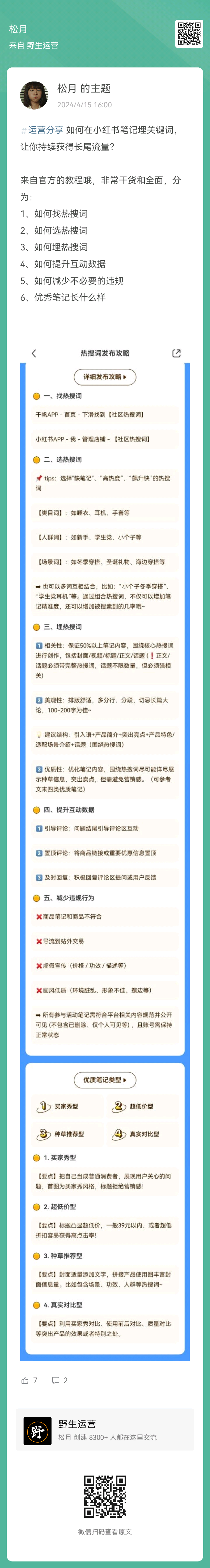 3、松月:如何在小红书笔记埋关键词,让你持续获得长尾流量(扫码查看全文)