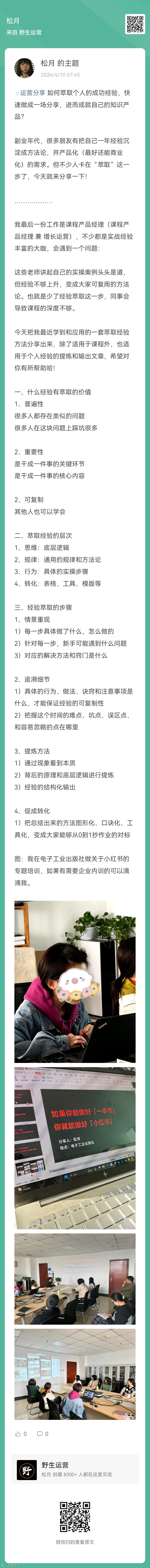 15、松月:如何萃取个人的成功经验,快速做成一场分享,进而成就自己的知识产品?(扫码查看全文)