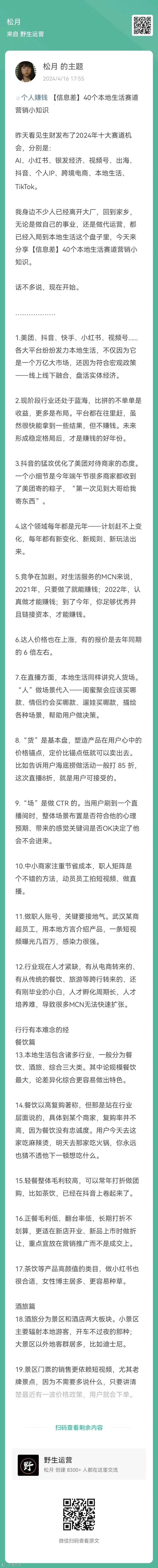 8、松月:【信息差】40个本地生活赛道营销小知识(扫码查看全文)