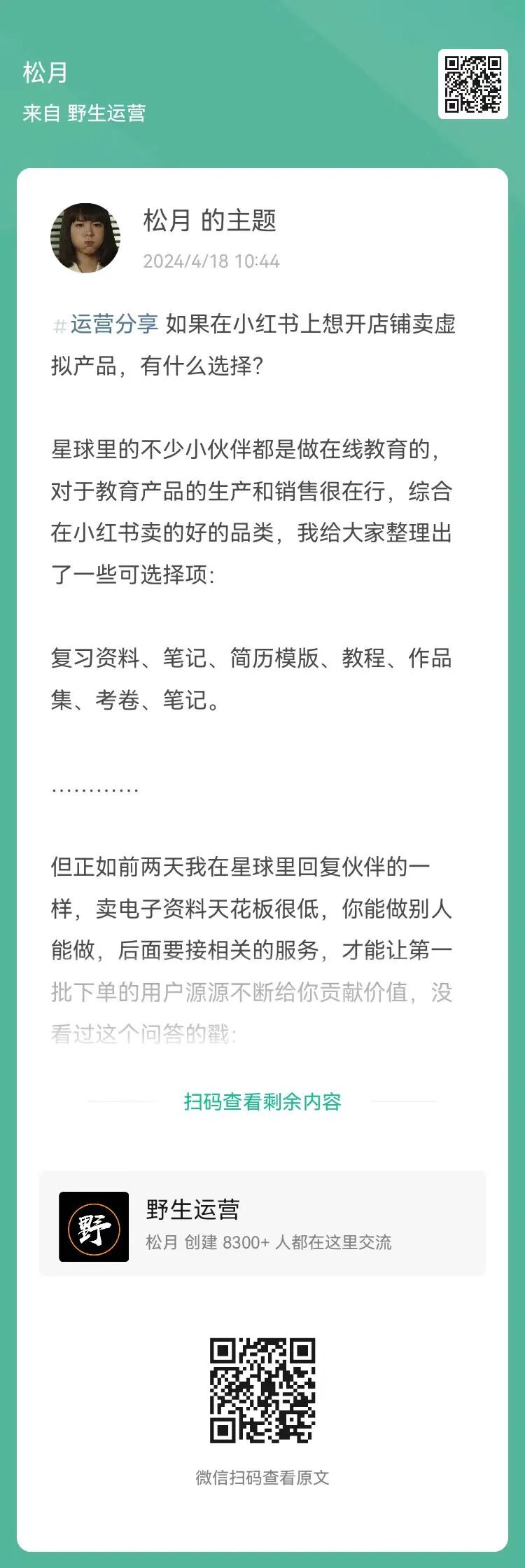 12、松月:如果在小红书上想开店铺卖虚拟产品,有什么选择(扫码查看全文)
