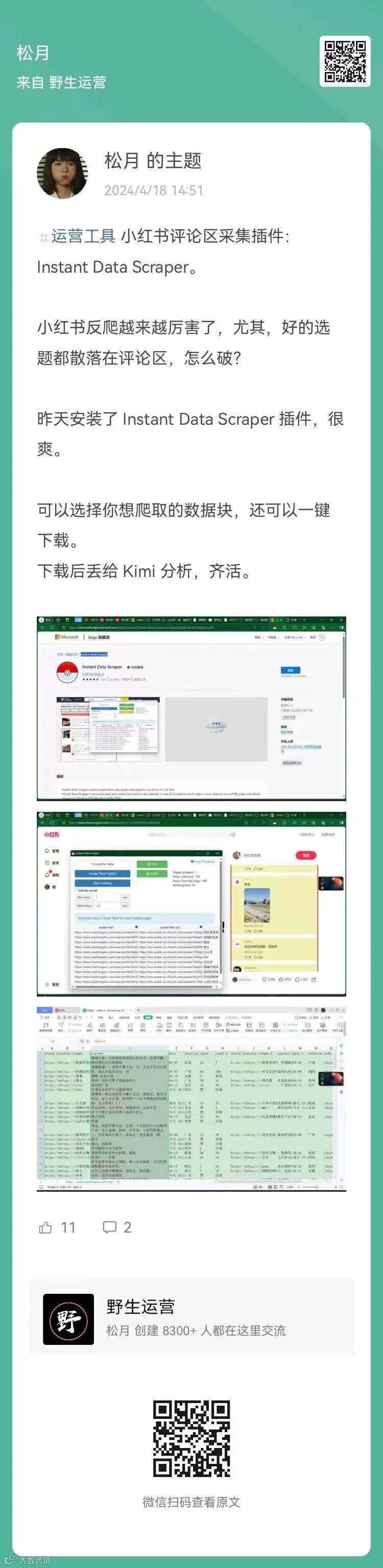14、松月:小红书评论区采集插件:Instant Data Scraper(扫码查看全文)