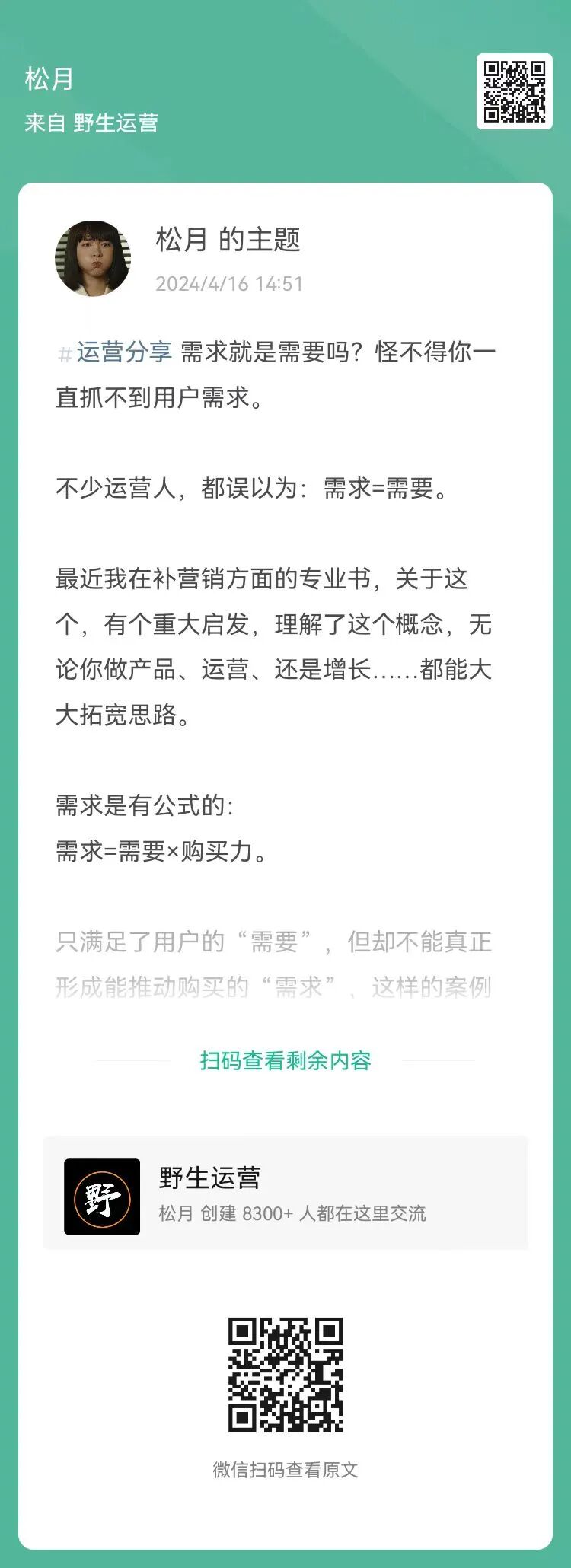 7、松月:需求就是需要吗?怪不得你一直抓不到用户需求(扫码查看全文)