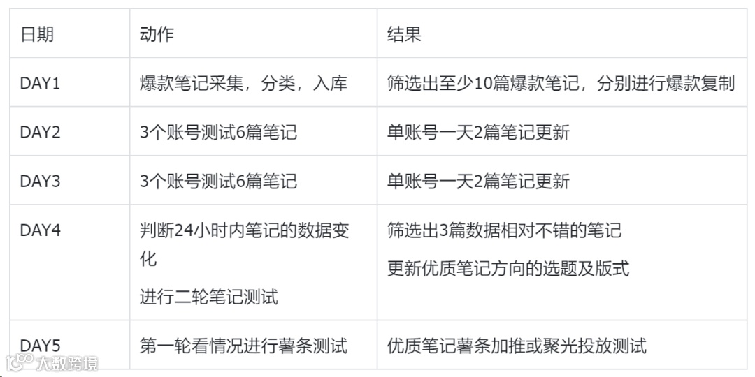 高质量的投放笔记其实是不断测试出来的,我们会花大量的时间去找爆款的对标笔记,本质上也是希望从对标中找到流量密码,但是这个过程很多小伙伴其实是没有头绪到底该怎么做的,上图是小红书给到的爆款531模型,在我看来这个爆款模型过于保守,实际上应该是1031模型,那就是至少测试10种不同类型的爆款对标,从这个过程中筛选出数据好的笔记,2~3篇,如果没有,那证明还需要再多测试几次。