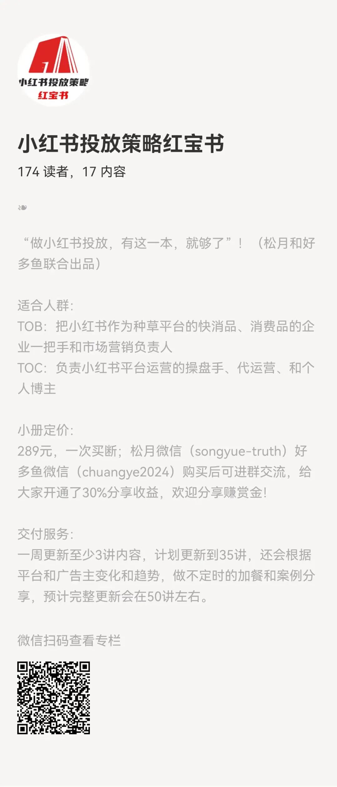 以上,欢迎订阅小报童专栏《小红书投放策略红宝书》: