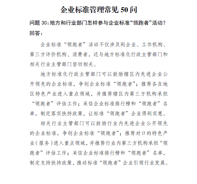 【标准讲堂】企业标准管理常见50问 第30期