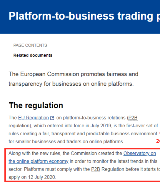据外媒消息称,亚马逊或将被欧盟正式提起反垄断指控。为提高在线平台的公平性和透明度,去年欧盟委员会出台了《欧盟商业平台(P2B)条例》(下文简称 “P2B法规”)。这项法规主要是为了让电子商务市场、应用程序商店、商业社交媒体等能够更加公平透明,以杜绝科技巨头利用自身的优势进行一些不公平的商业行为。