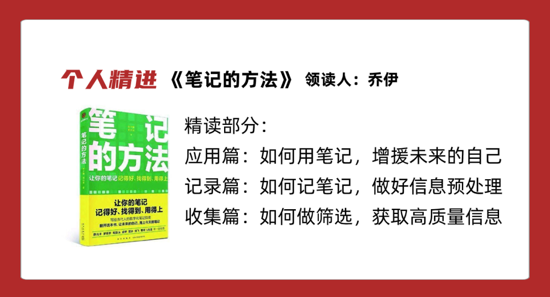 《笔记的方法》---个人精进 《金钱心理学》---财富管理 《超级留量》---事业提升