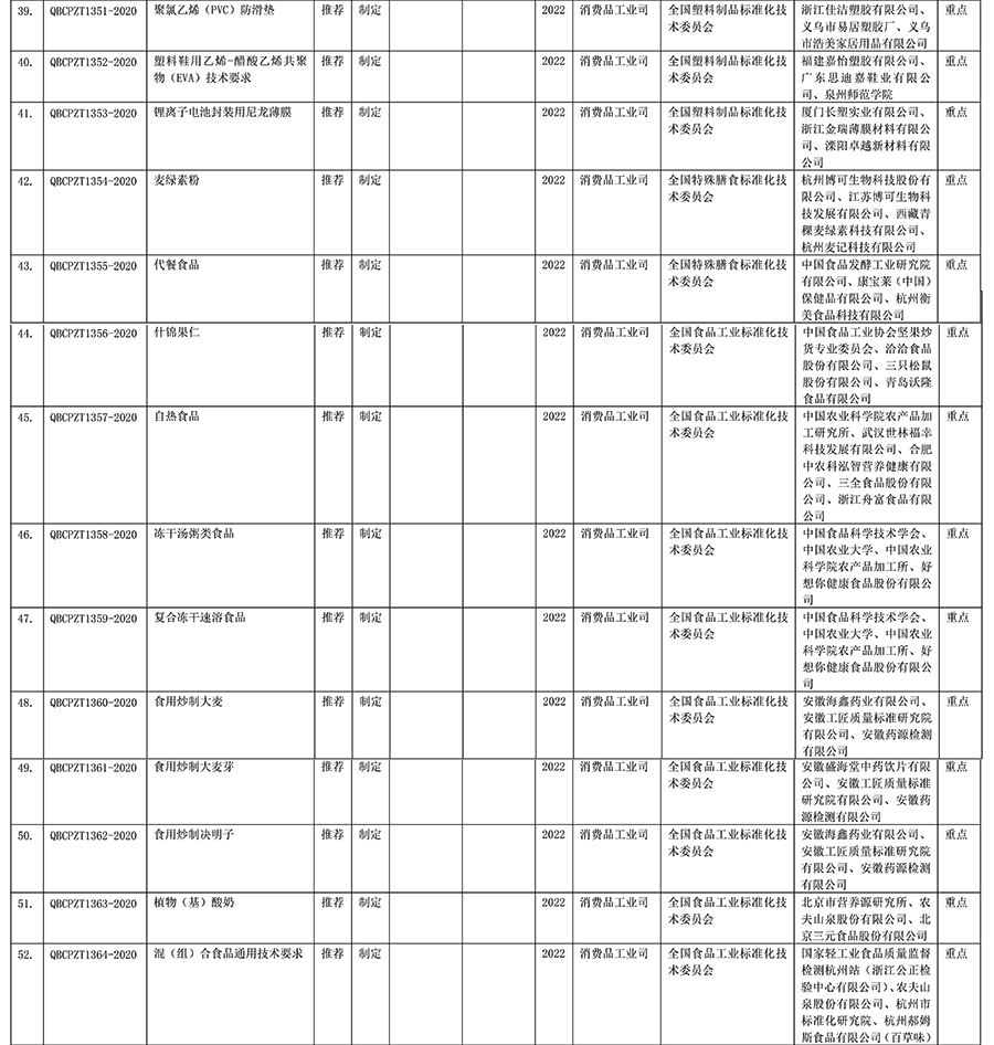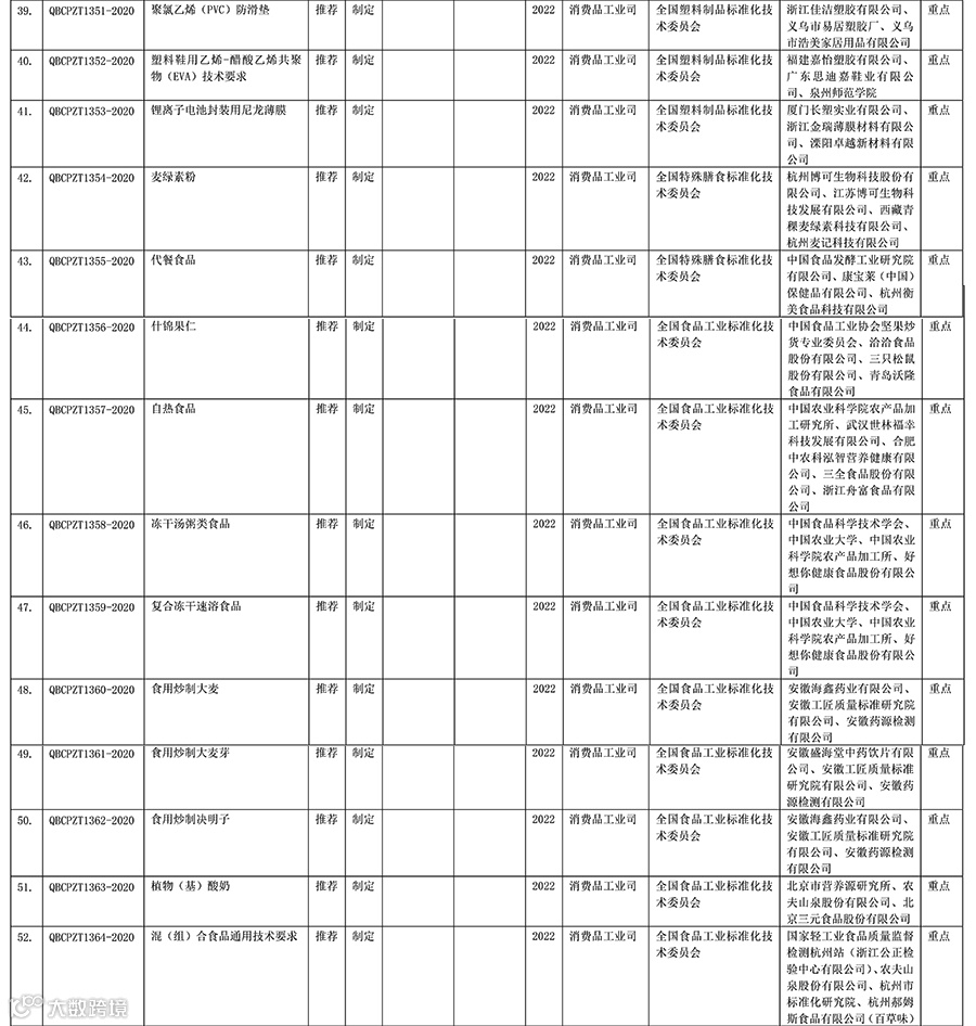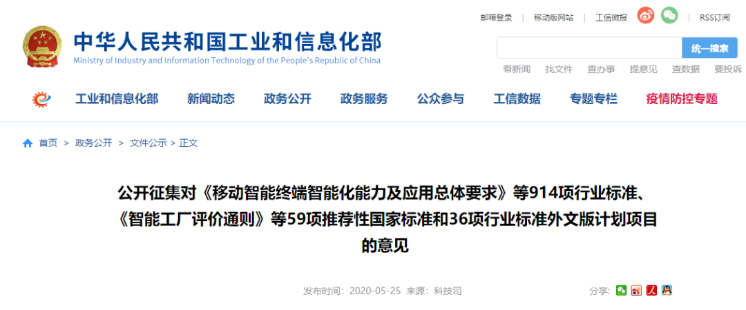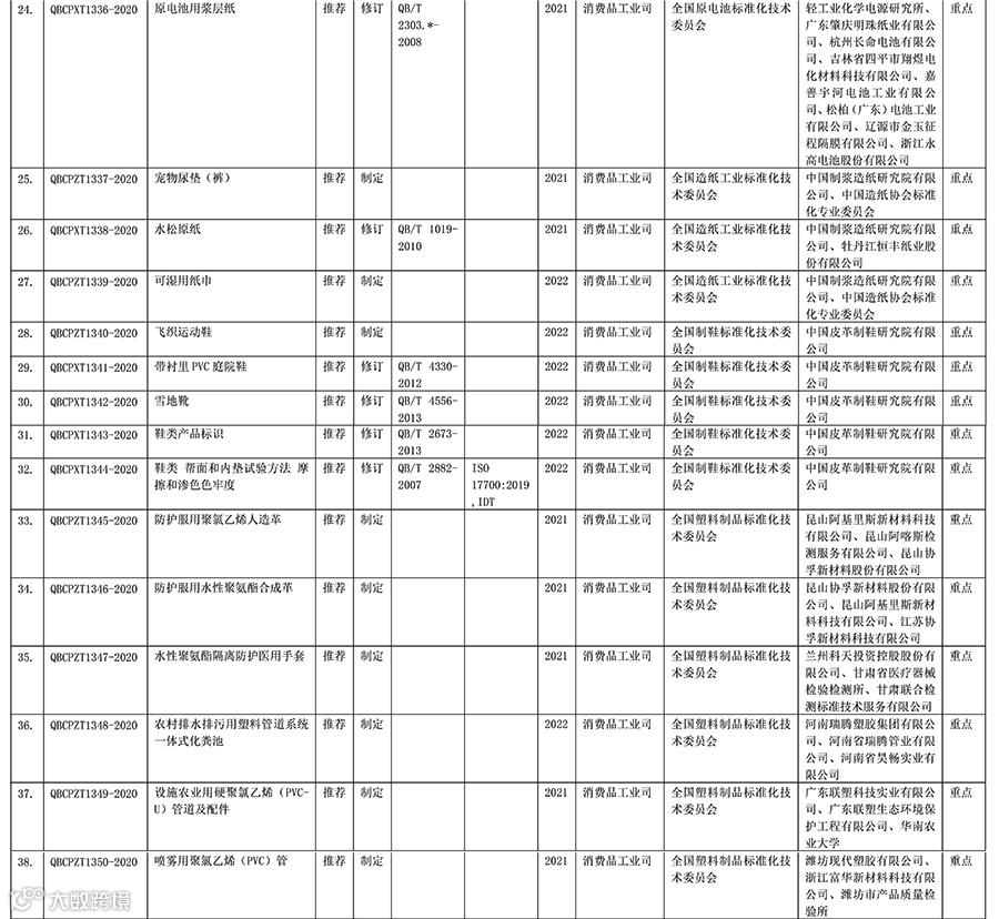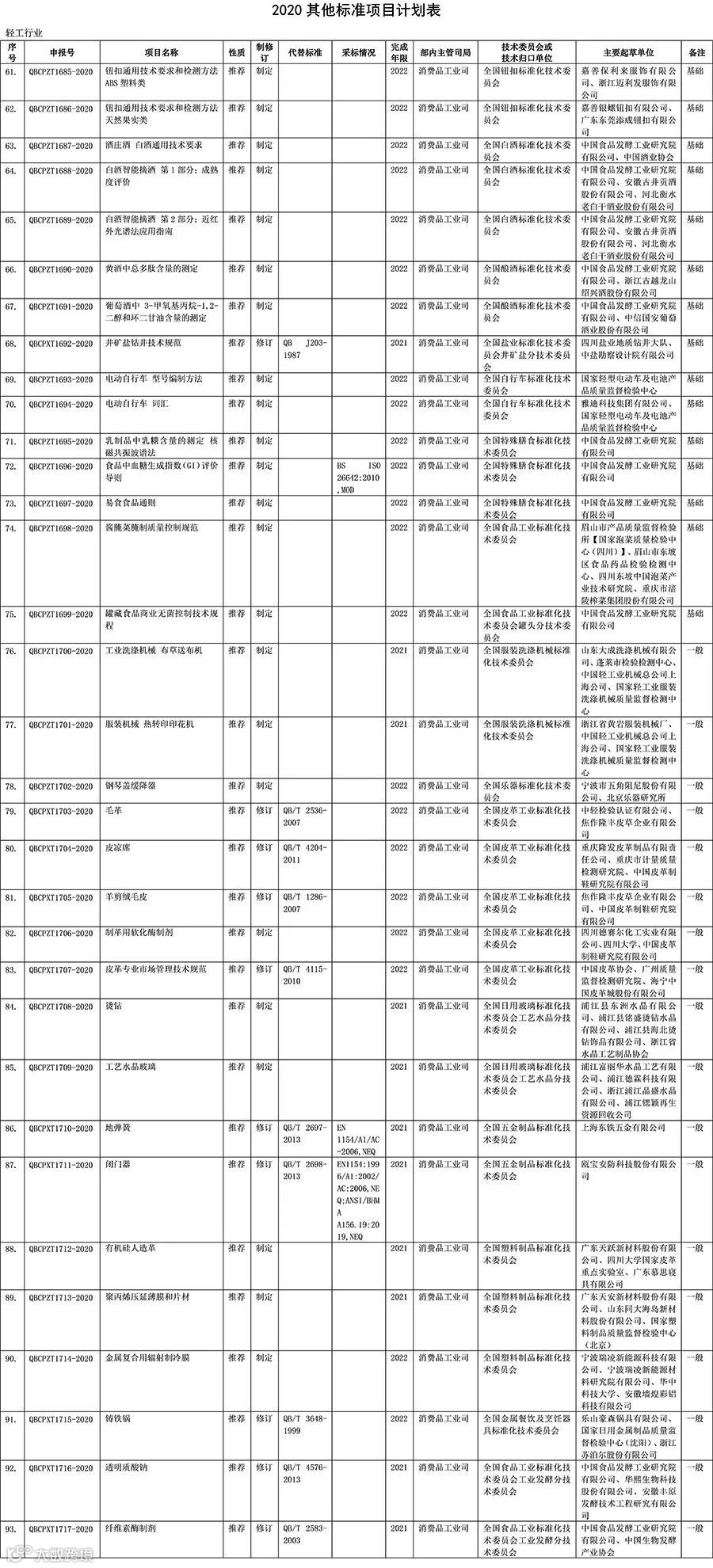 5月25日,根据标准化工作的总体安排,工业和信息化部公示了申请立项的914项行业标准计划项目,其中涉及轻工行业的有5项绿色制造标准项目计划、55项2020质量提升标准项目计划和33项其他标准项目计划。公众如对拟立项标准项目有不同意见,可在公示期间填写《标准立项反馈意见表》并反馈至工业和信息化部科技司,电子邮件发送至KJBZ@miit.gov.cn,截止日期为2020年6月24日。